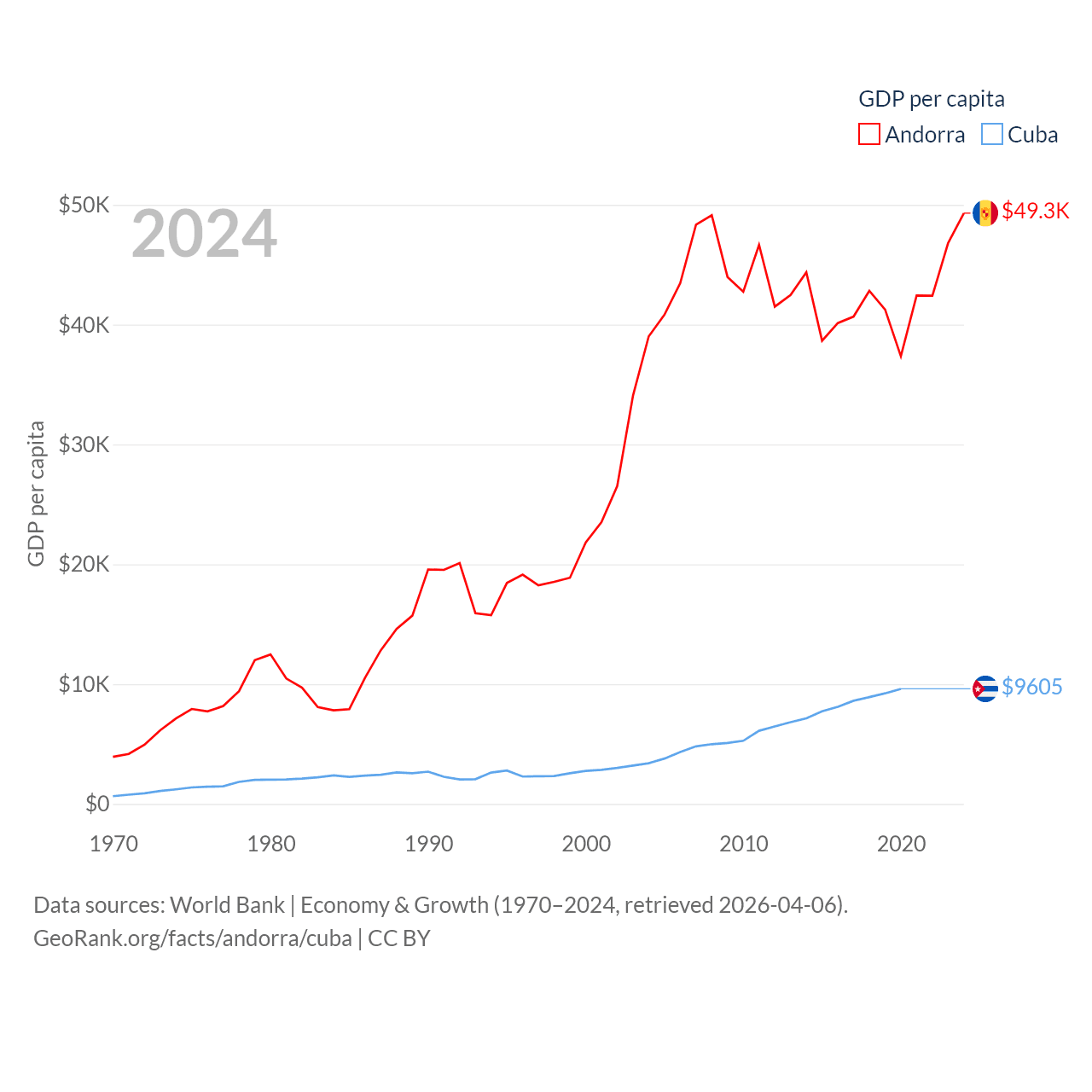 Data sources: World Bank | Economy & Growth (1970–2024, retrieved 2026-04-06).