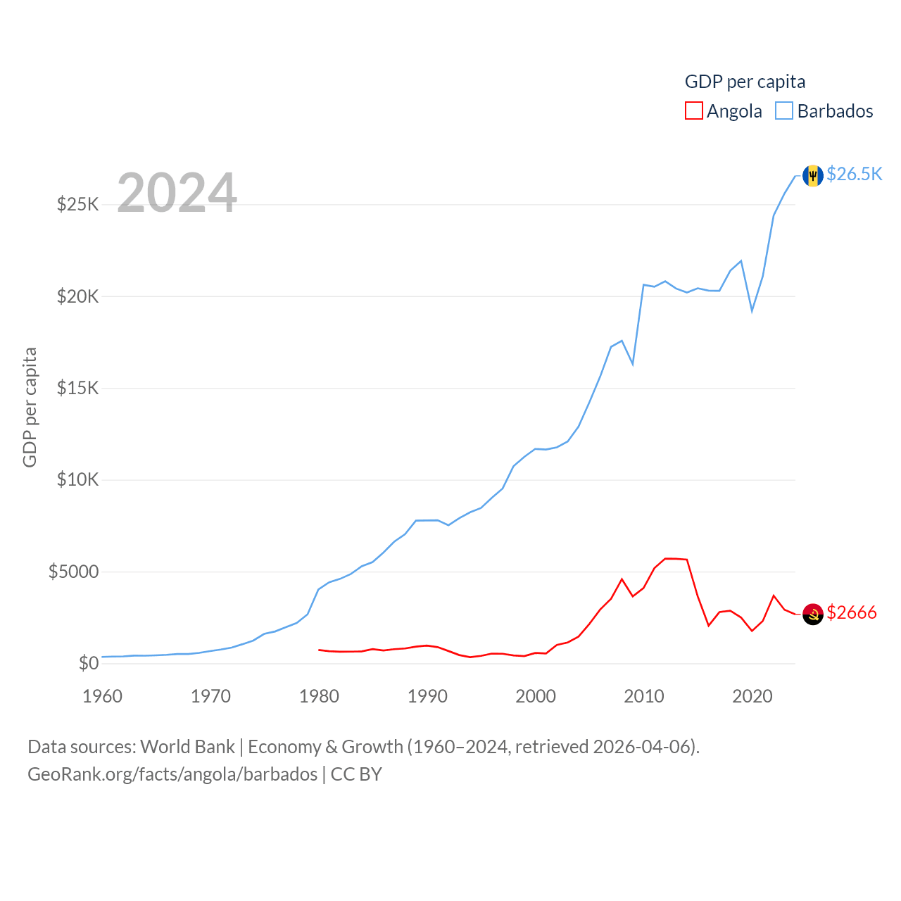 Angola and Barbados economies compared