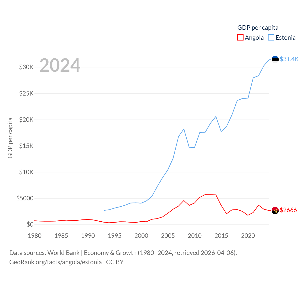 Data sources: World Bank | Economy & Growth (1980–2024, retrieved 2026-04-06).