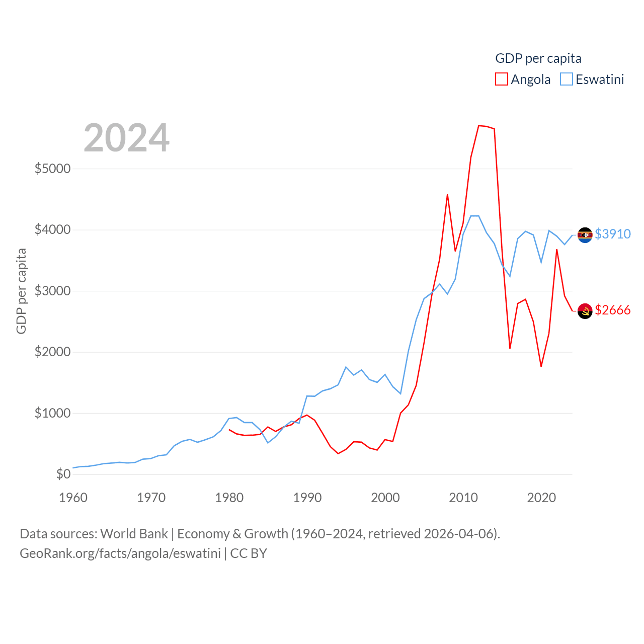 Angola and Eswatini economies compared