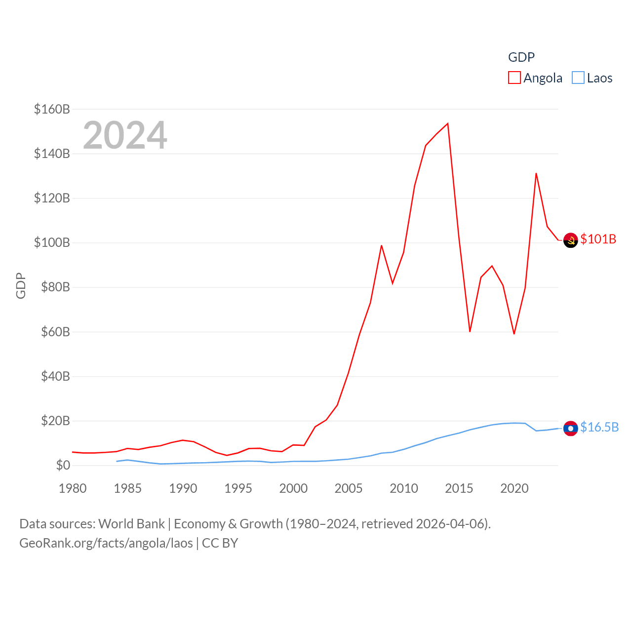 Data sources: World Bank | Economy & Growth (1980–2024, retrieved 2026-04-06).