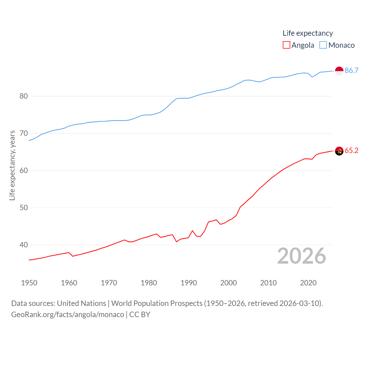 Angola and Monaco: Comparison Charts