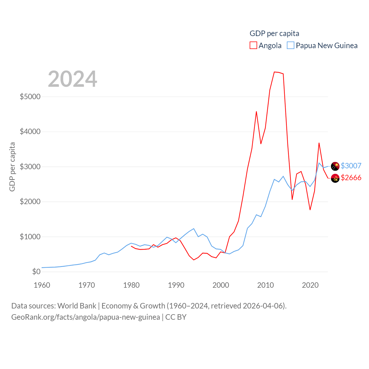 Angola and Papua New Guinea economies compared