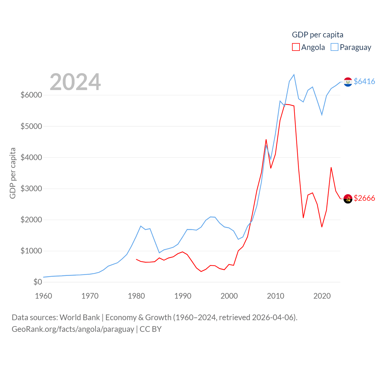 Angola and Paraguay economies compared