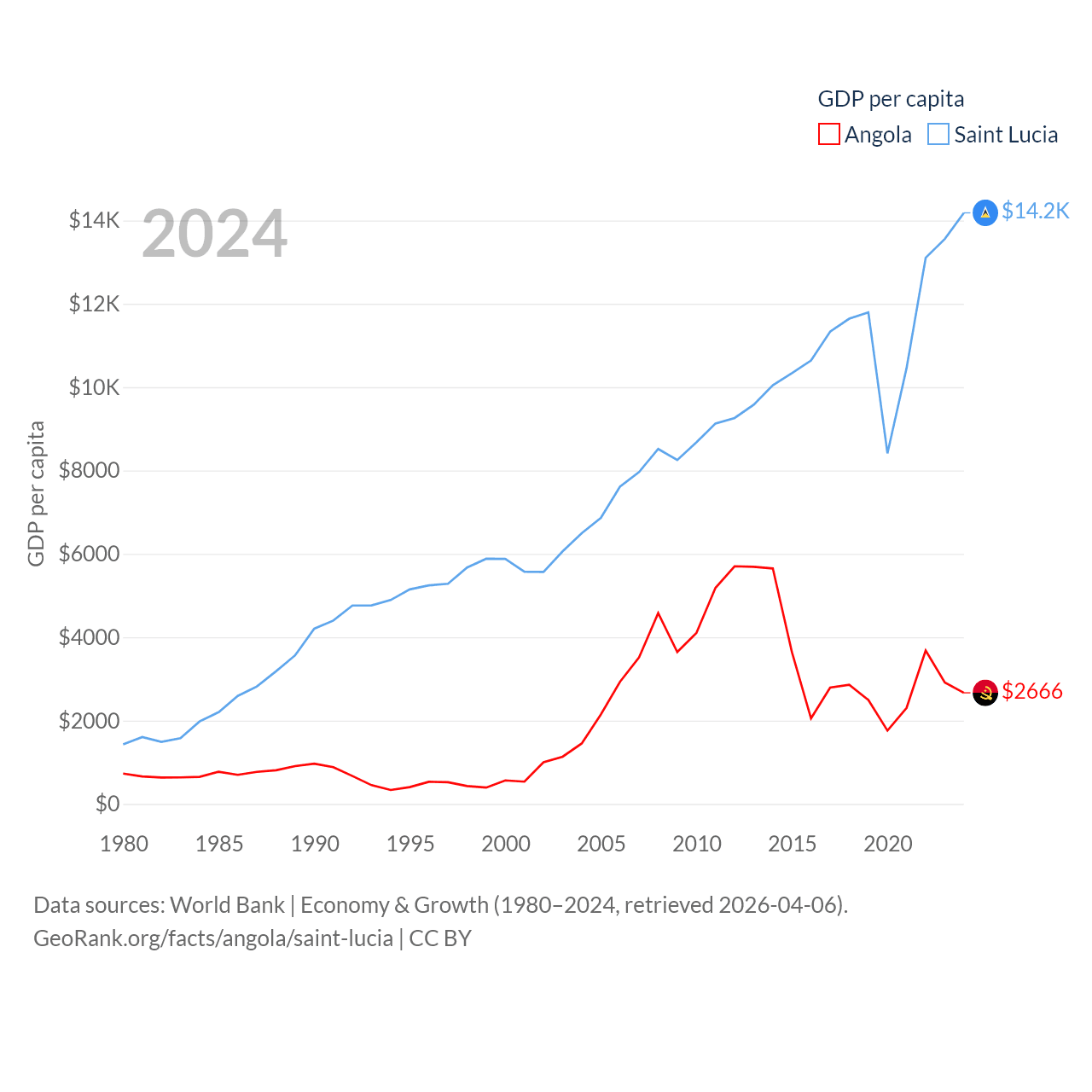 Angola and Saint Lucia economies compared