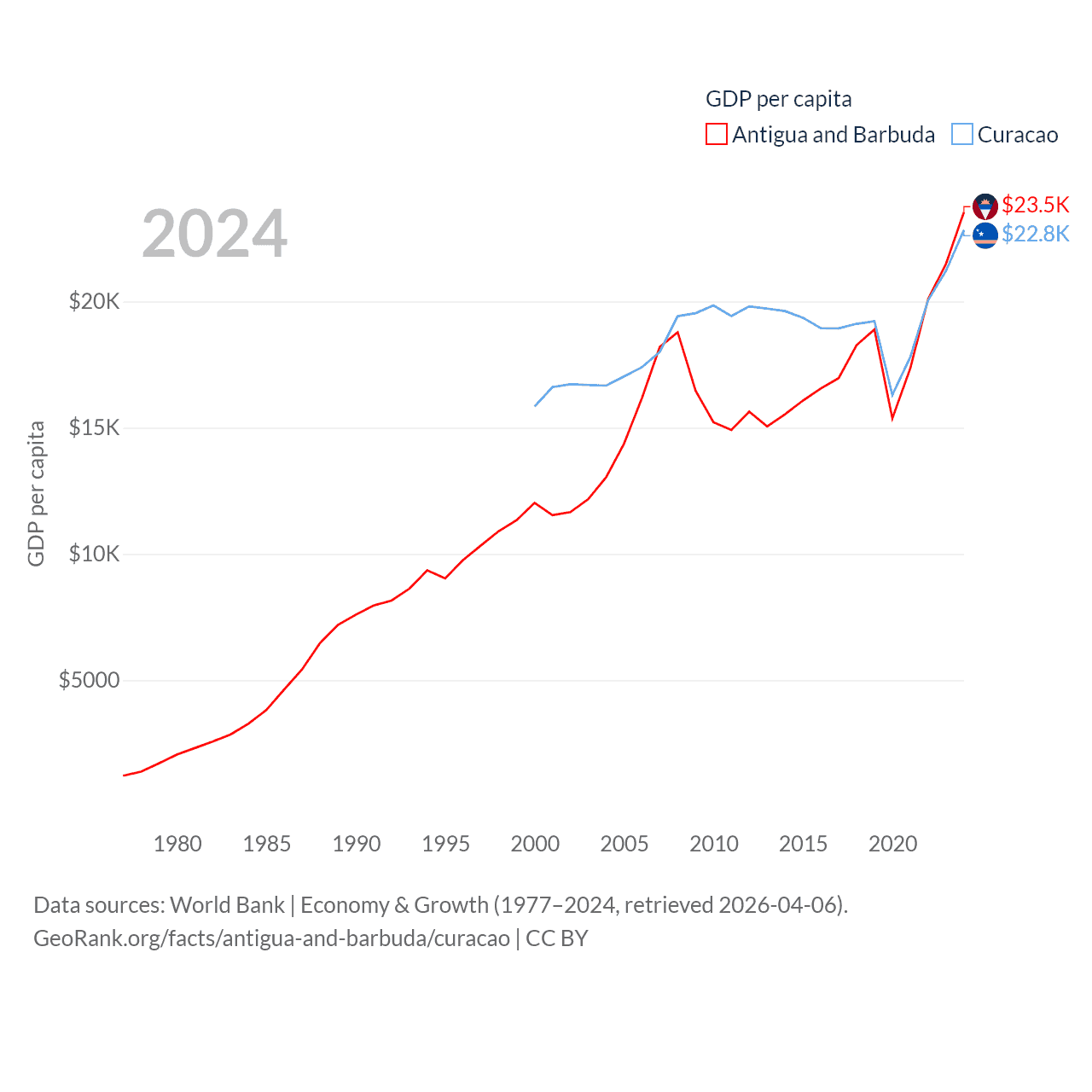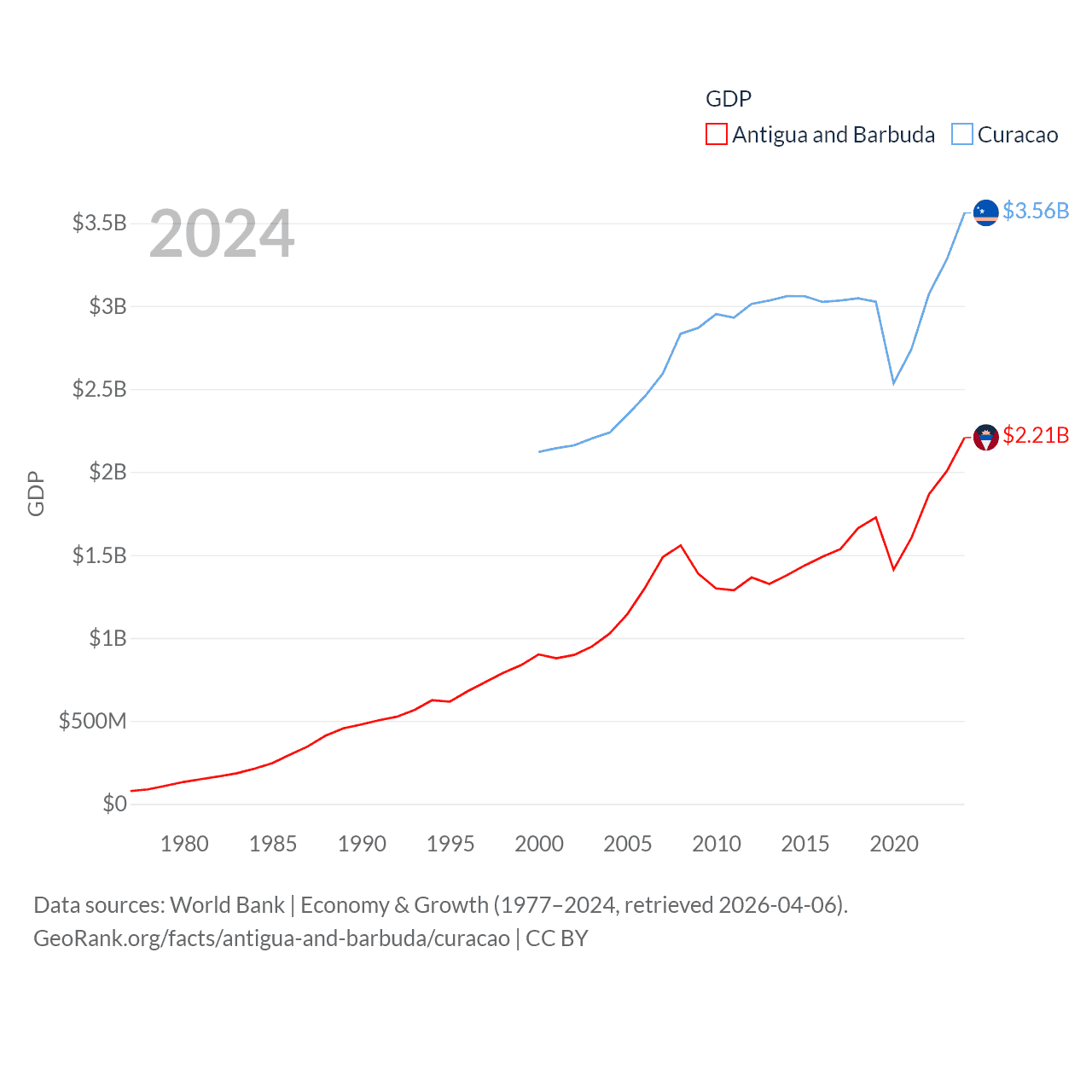 Data sources: World Bank | Economy & Growth (1977–2024, retrieved 2026-04-06).