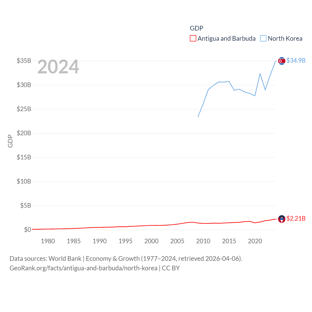 Data sources: World Bank | Economy & Growth (1977–2024, retrieved 2026-04-06).