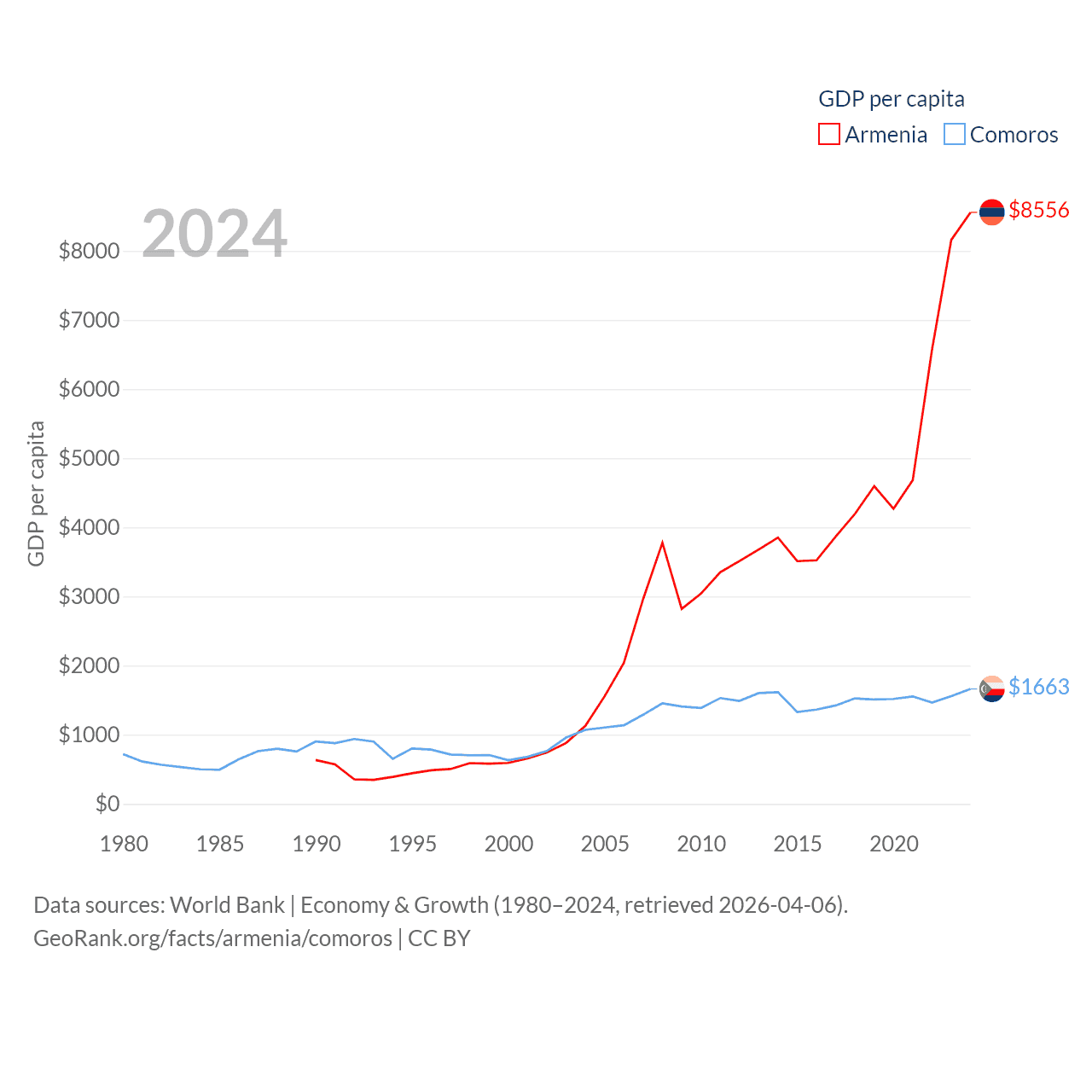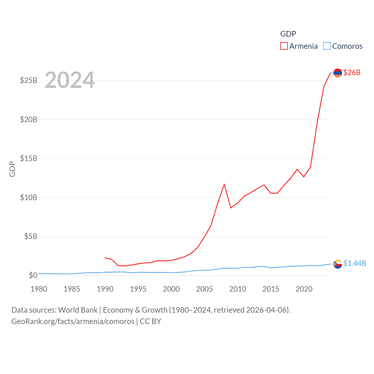 Data sources: World Bank | Economy & Growth (1980–2024, retrieved 2026-04-06).