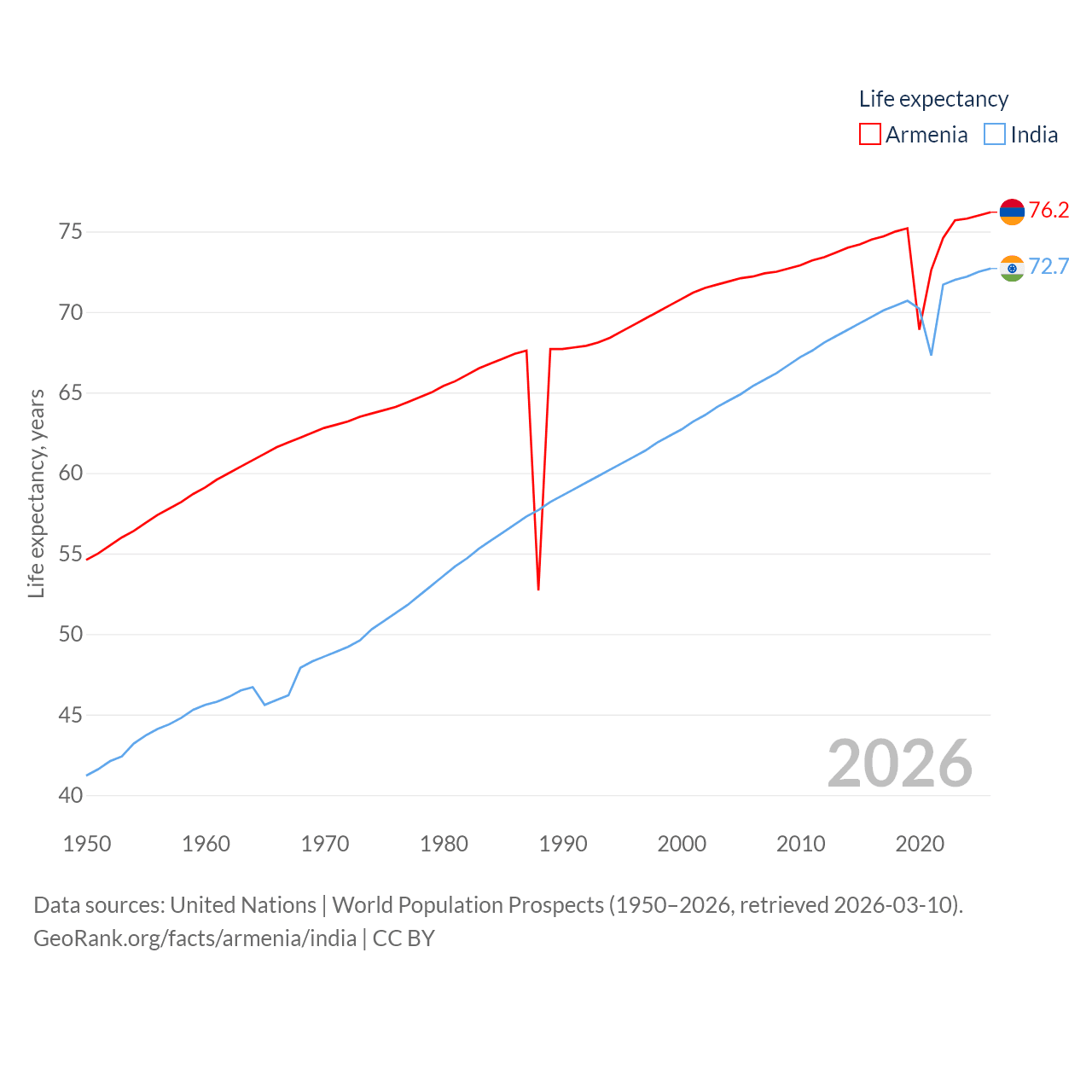 - United Nations | World Population Prospects (1950–2026, retrieved 2026-03-10)