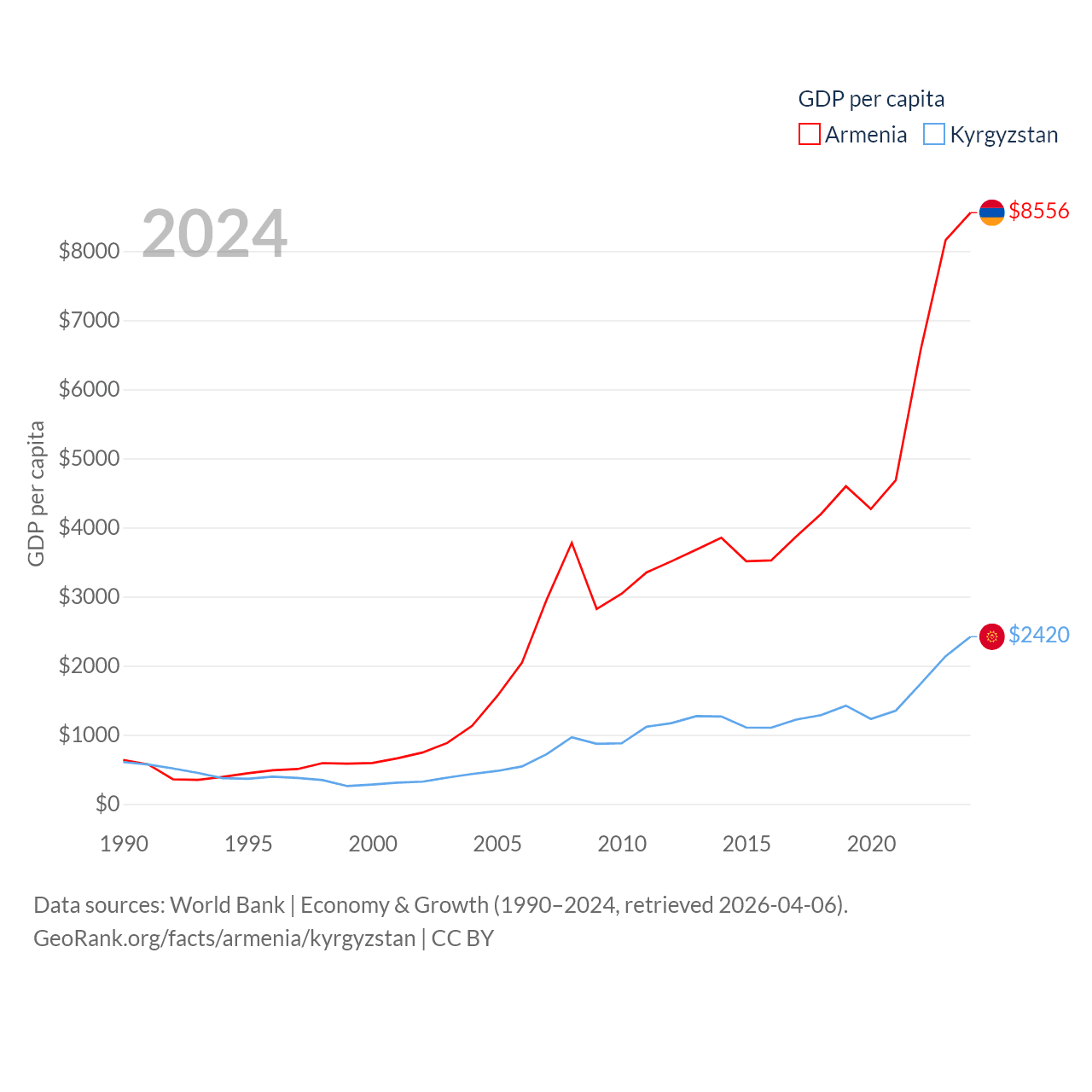 Data sources: World Bank | Economy & Growth (1990–2024, retrieved 2026-04-06).