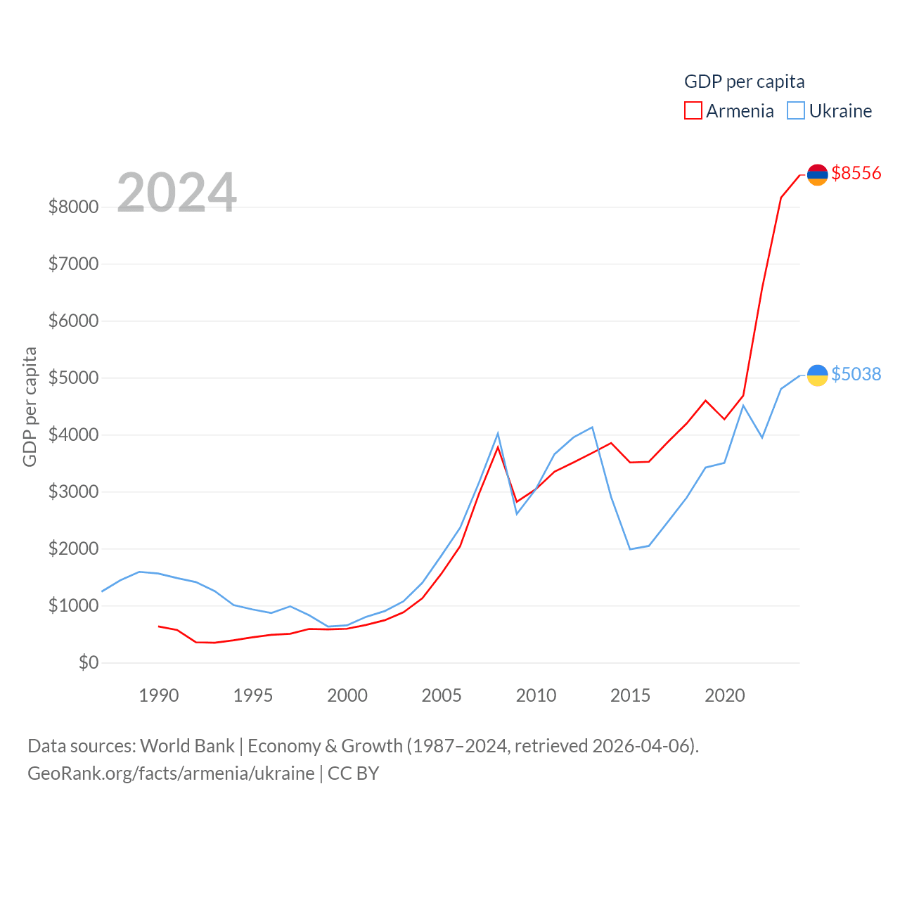 Data sources: World Bank | Economy & Growth (1987–2024, retrieved 2026-04-06).