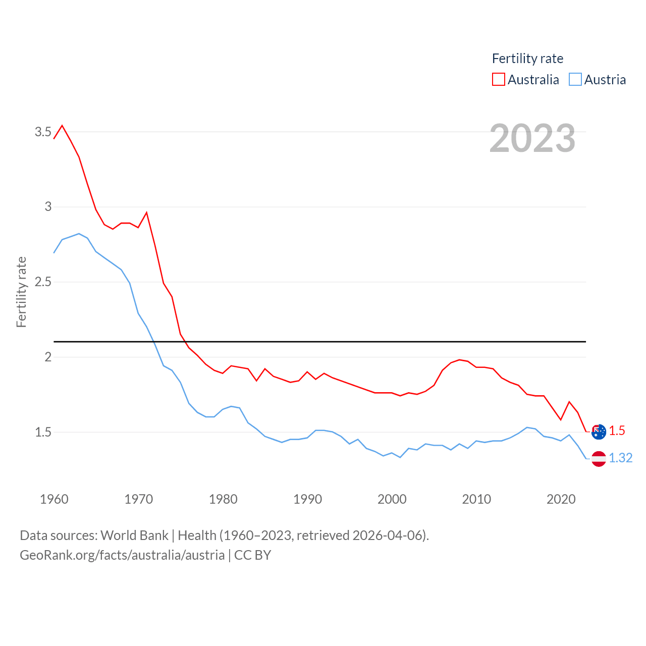 - World Bank | Health (1960–2025, retrieved 2026-04-06)