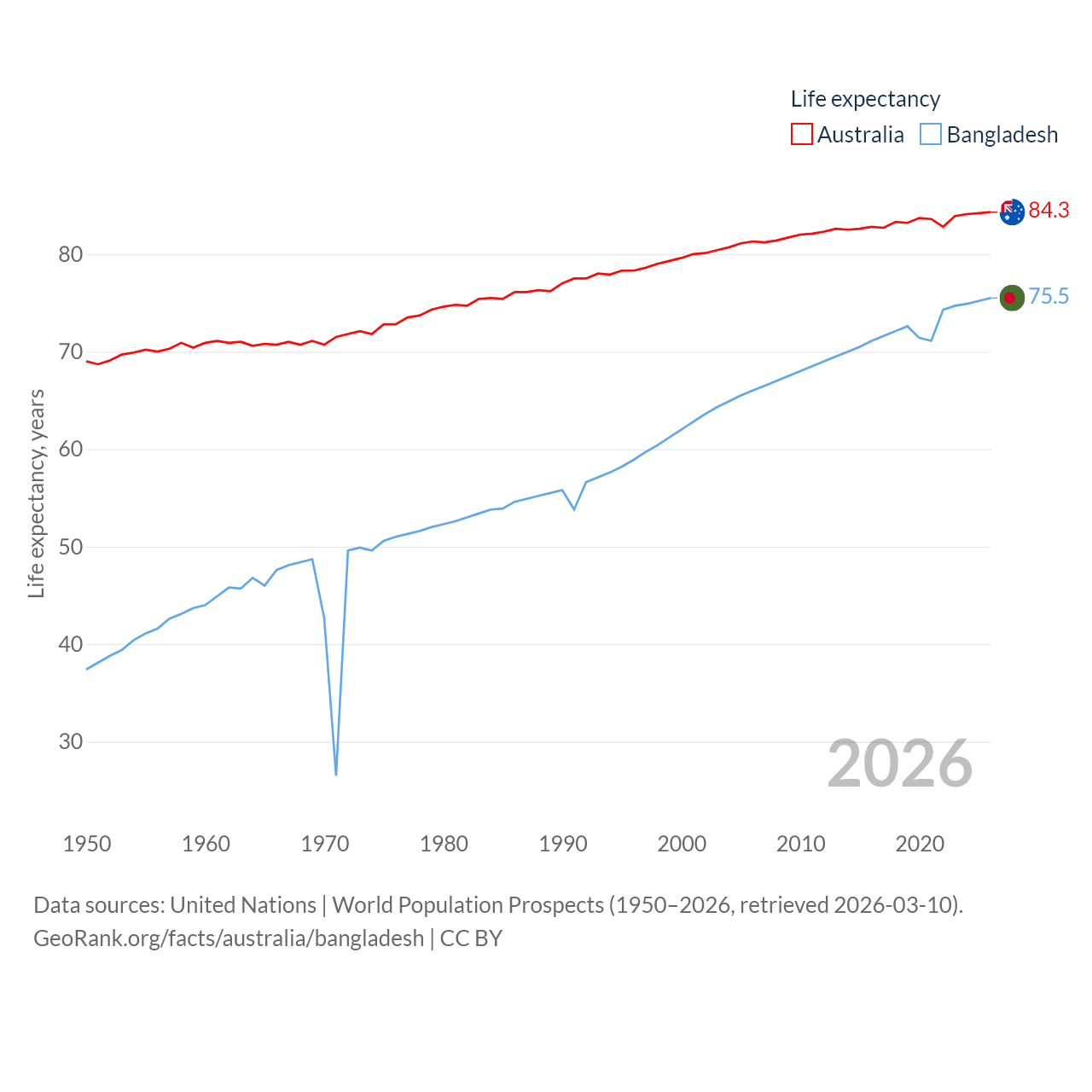 - United Nations | World Population Prospects (1950–2026, retrieved 2026-03-10)