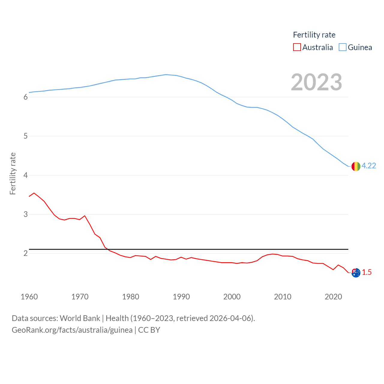 - World Bank | Health (1960–2025, retrieved 2026-04-06)
