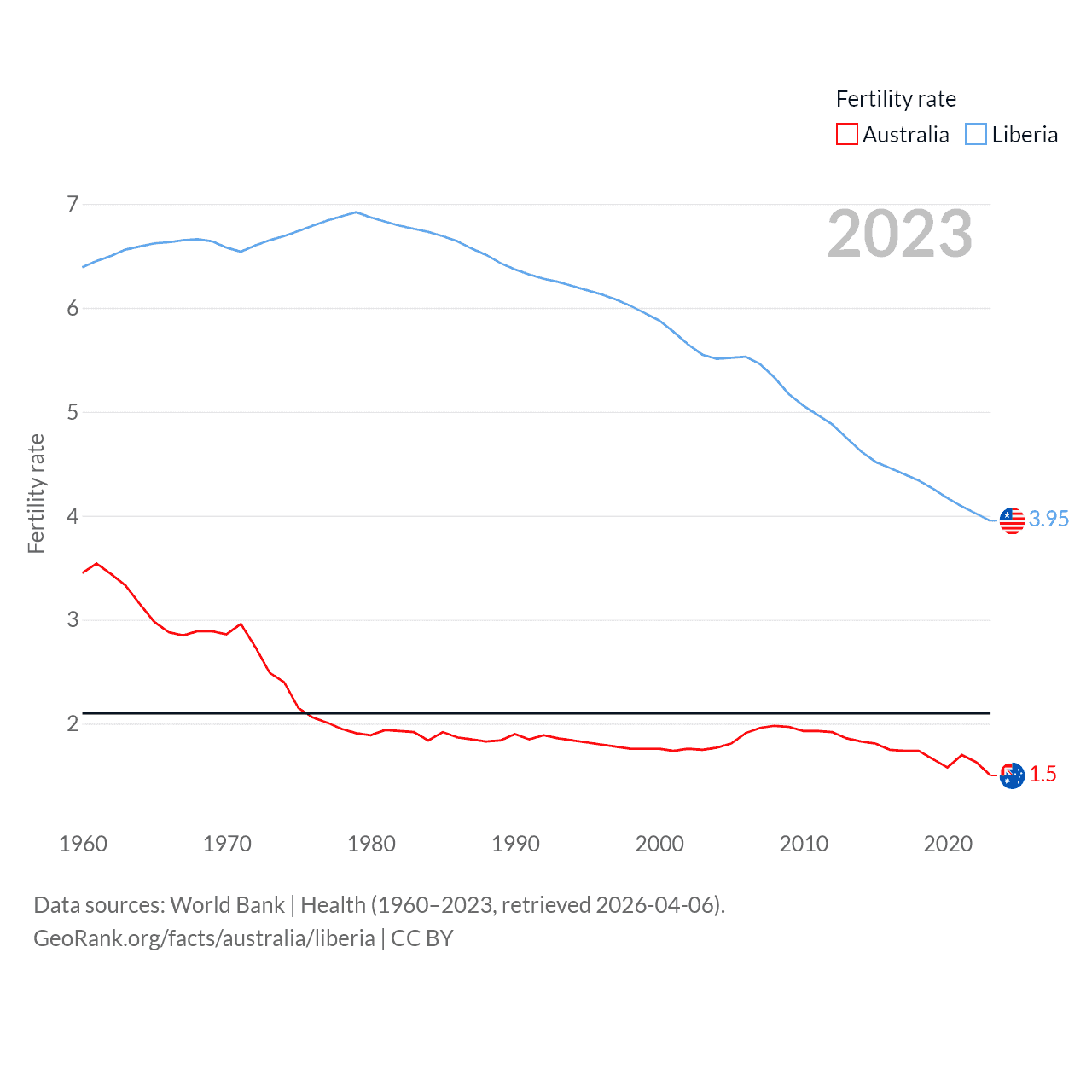 - World Bank | Health (1960–2025, retrieved 2026-04-06)