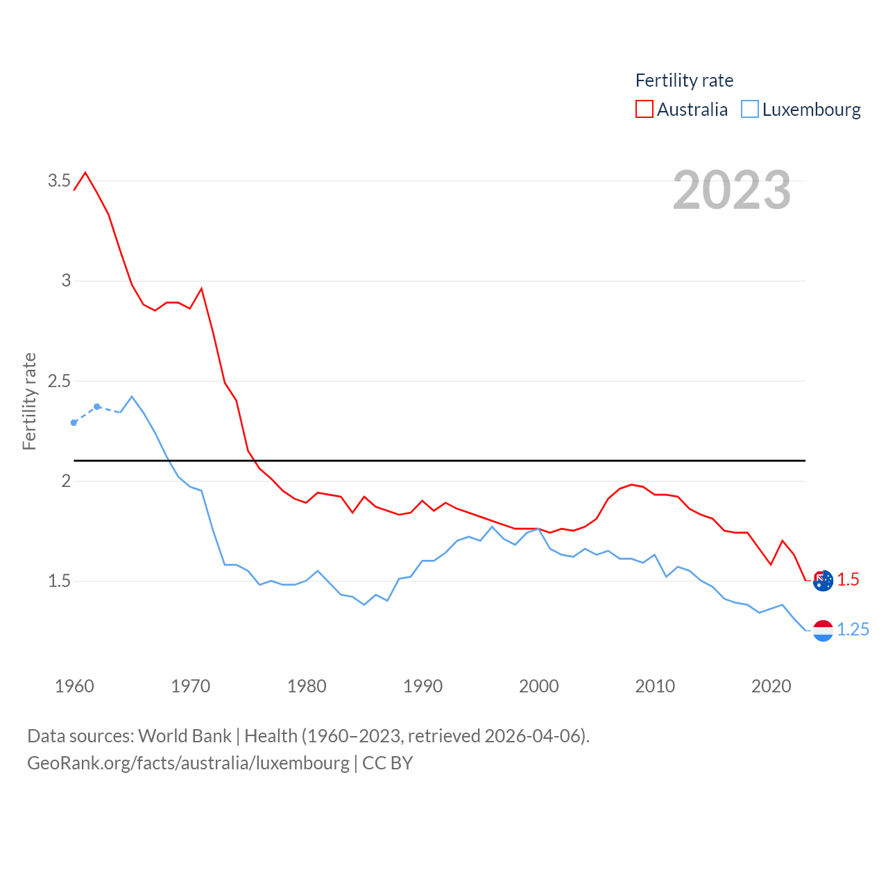 - World Bank | Health (1960–2025, retrieved 2026-04-06)