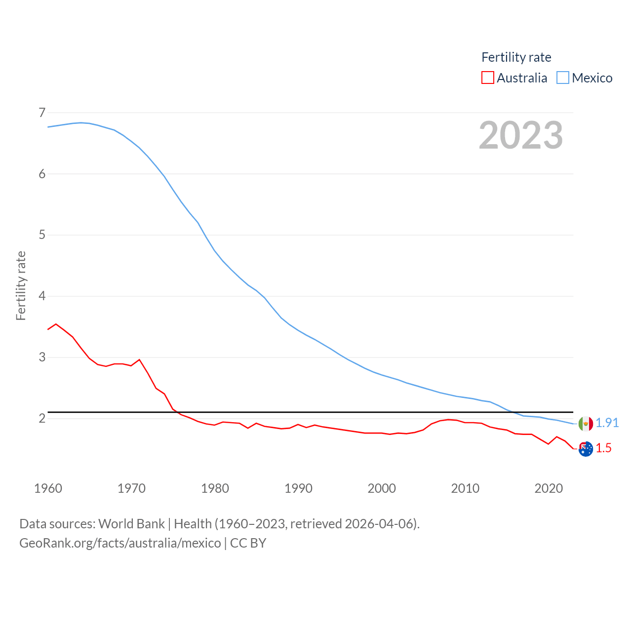 - World Bank | Health (1960–2025, retrieved 2026-04-06)