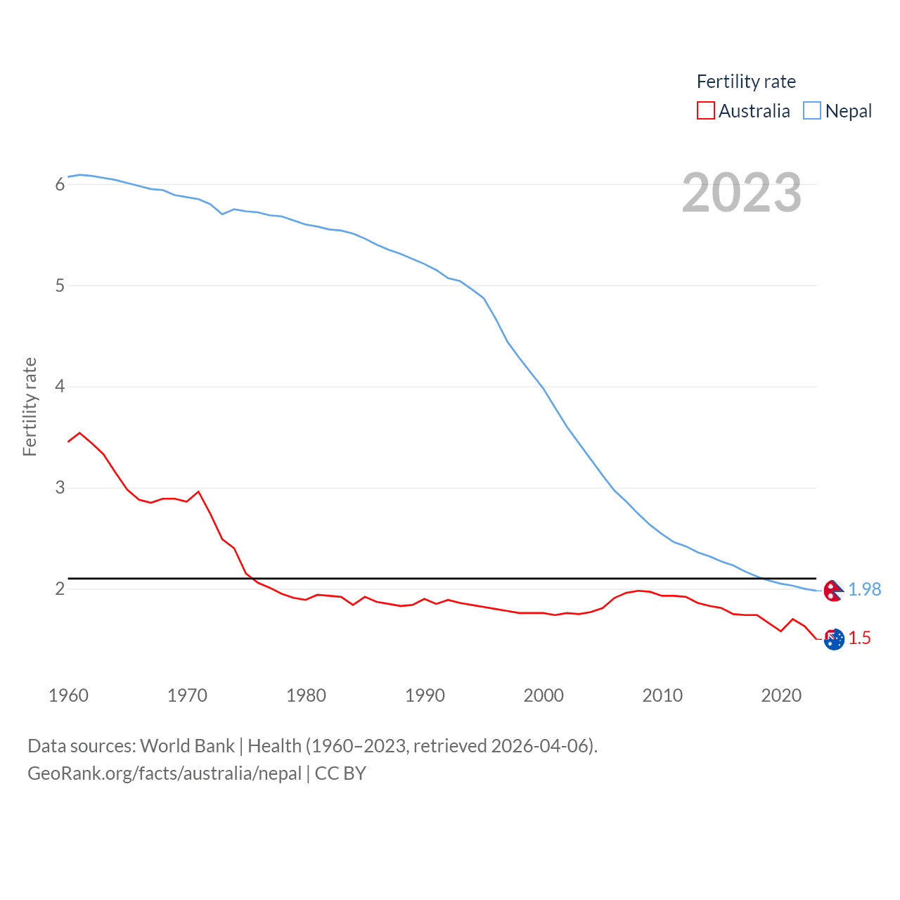 - World Bank | Health (1960–2025, retrieved 2026-04-06)