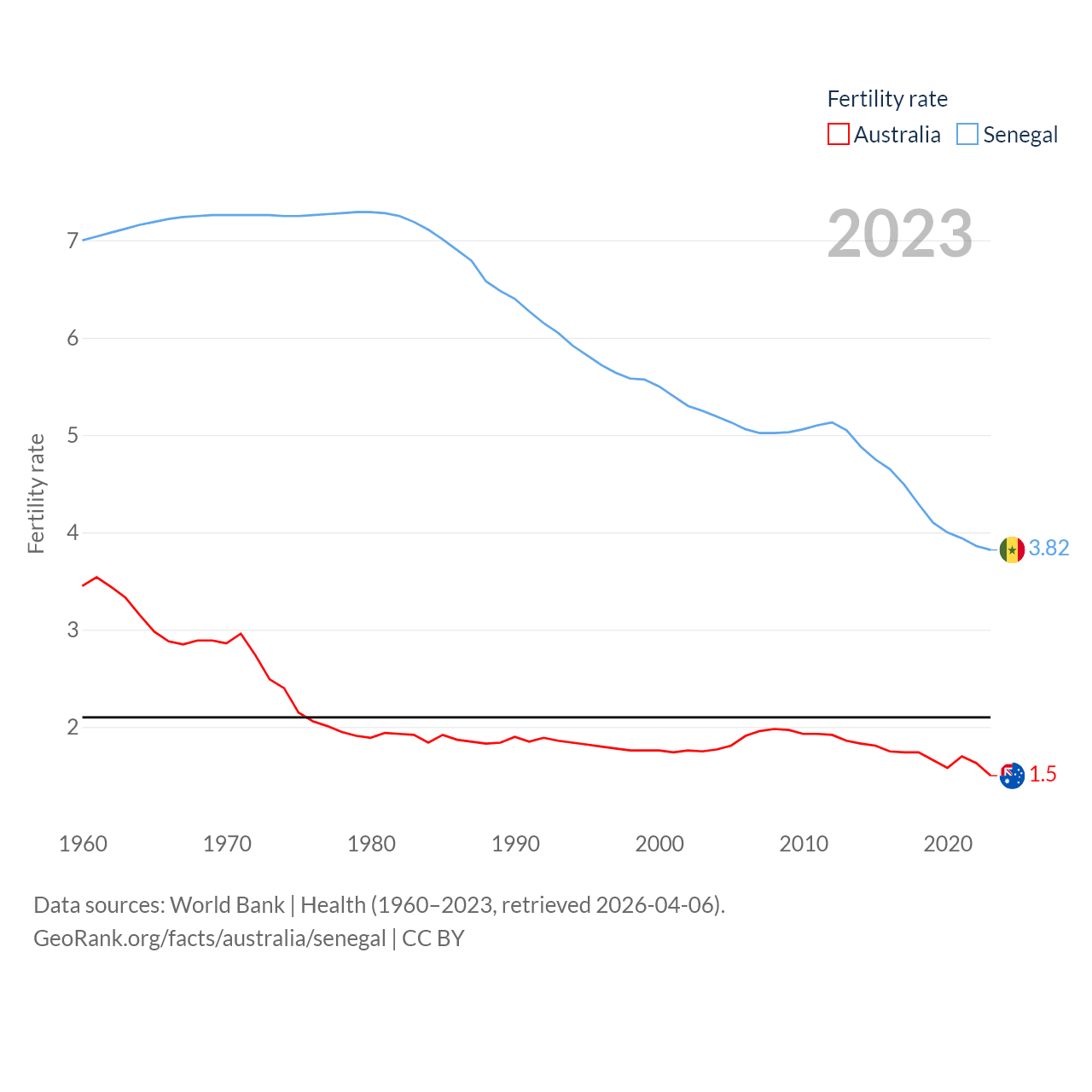 - World Bank | Health (1960–2025, retrieved 2026-04-06)