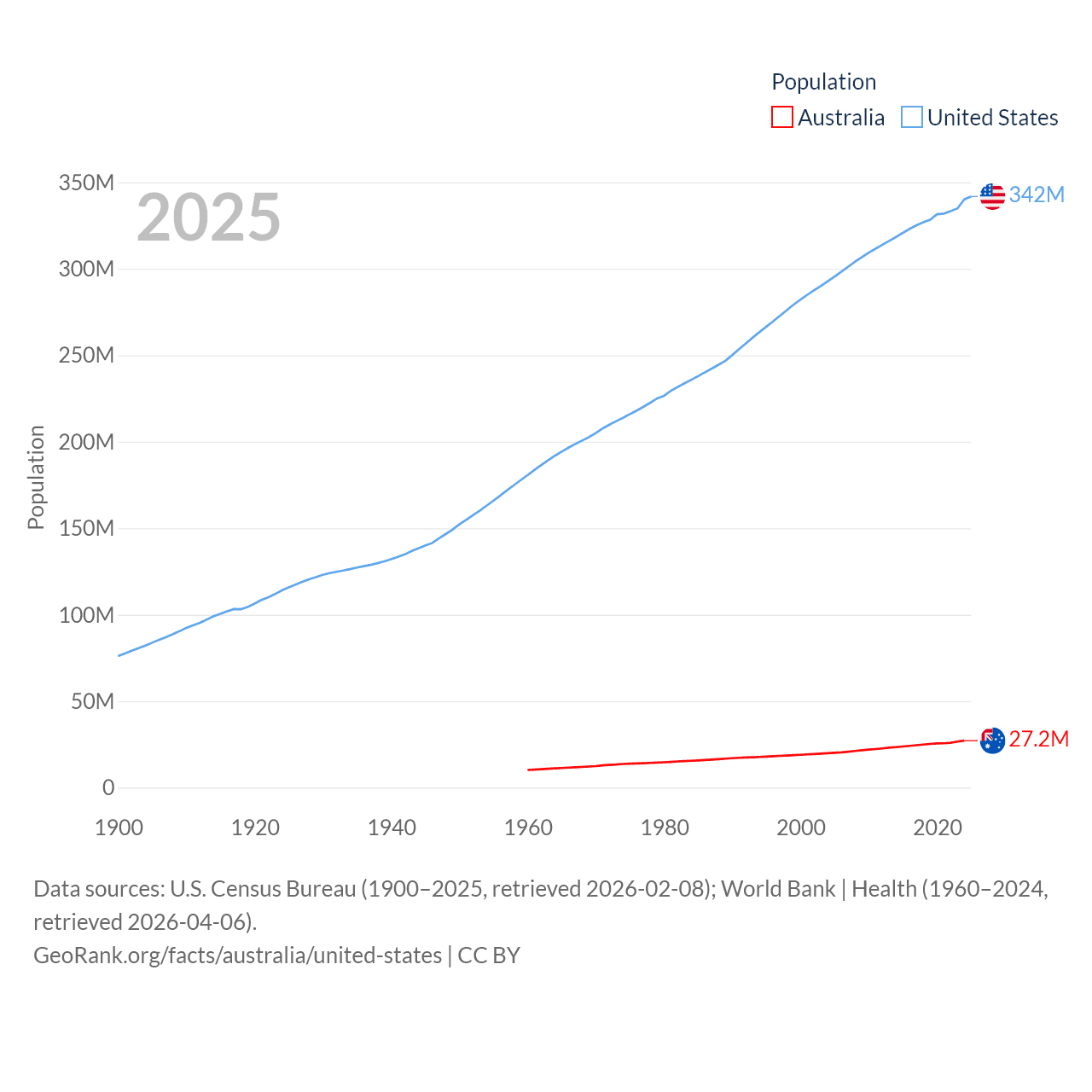 - U.S. Census Bureau (1900–2025, retrieved 2026-02-08)