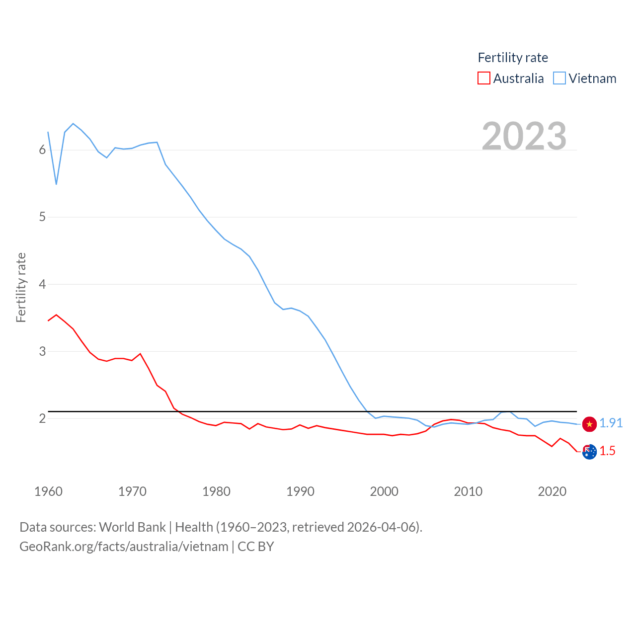 - World Bank | Health (1960–2025, retrieved 2026-04-06)