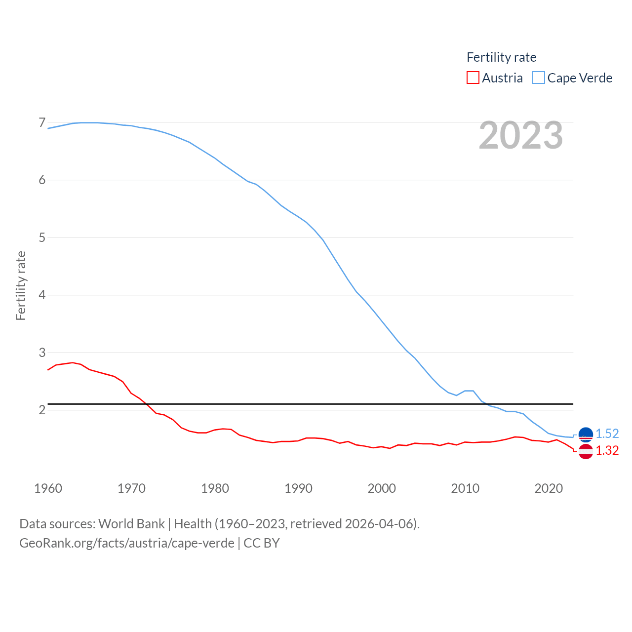 - World Bank | Health (1960–2025, retrieved 2026-04-06)
