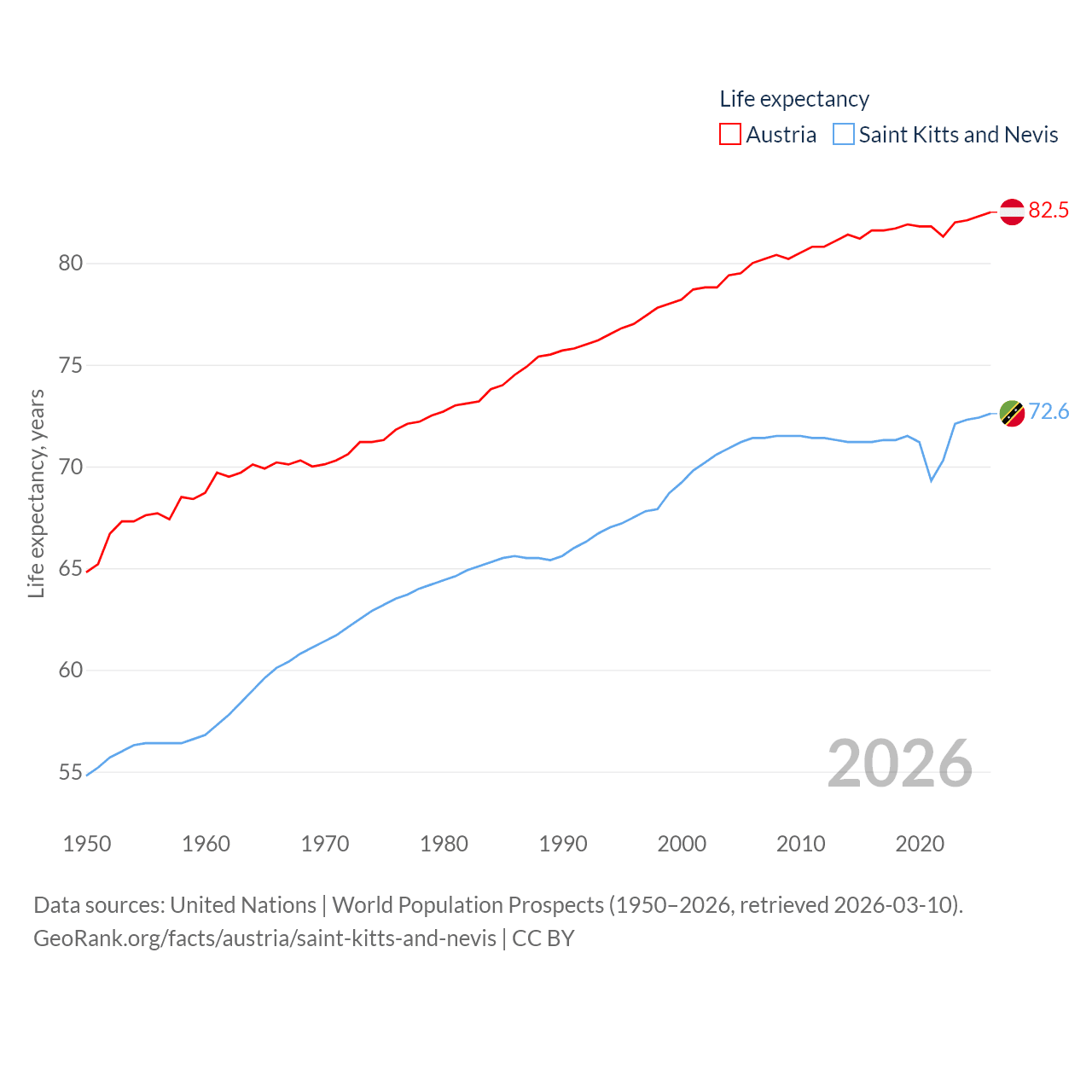 Austria and Saint Kitts and Nevis: Comparison Charts