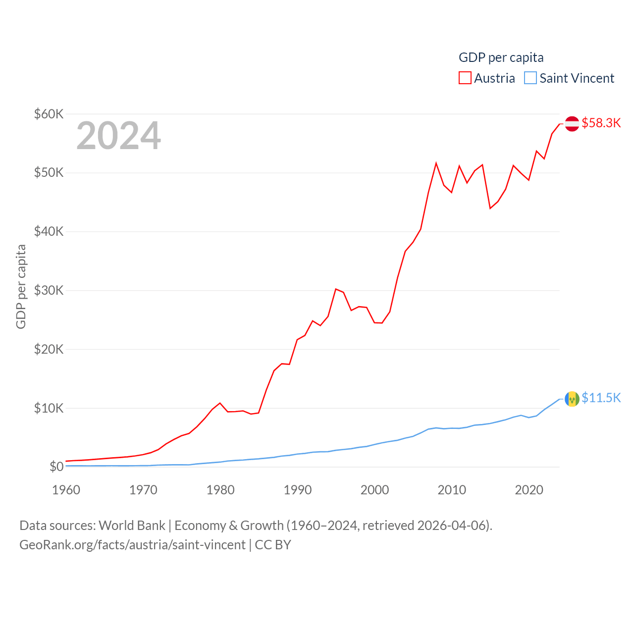 Austria and Saint Vincent economies compared