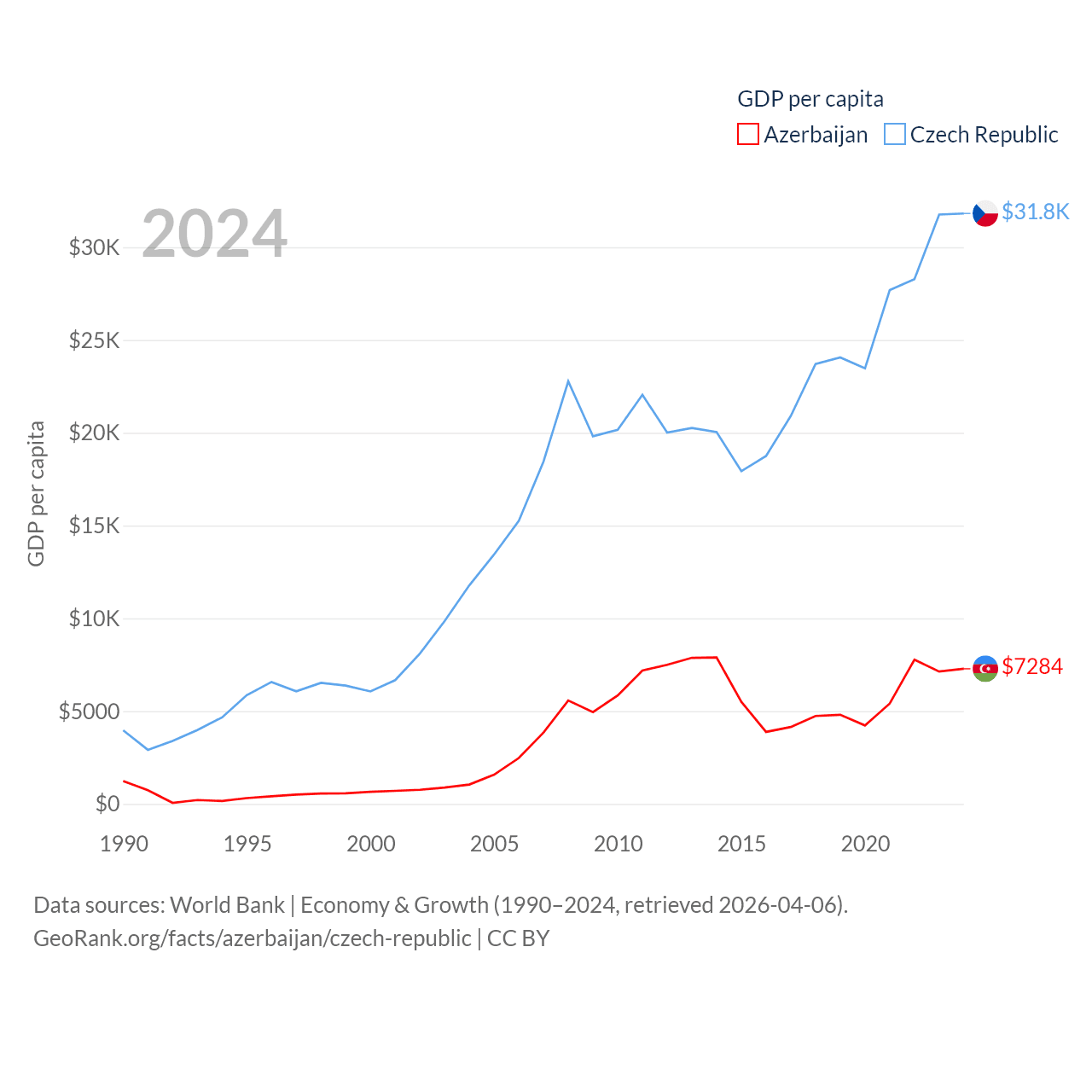 Data sources: World Bank | Economy & Growth (1990–2024, retrieved 2026-04-06).