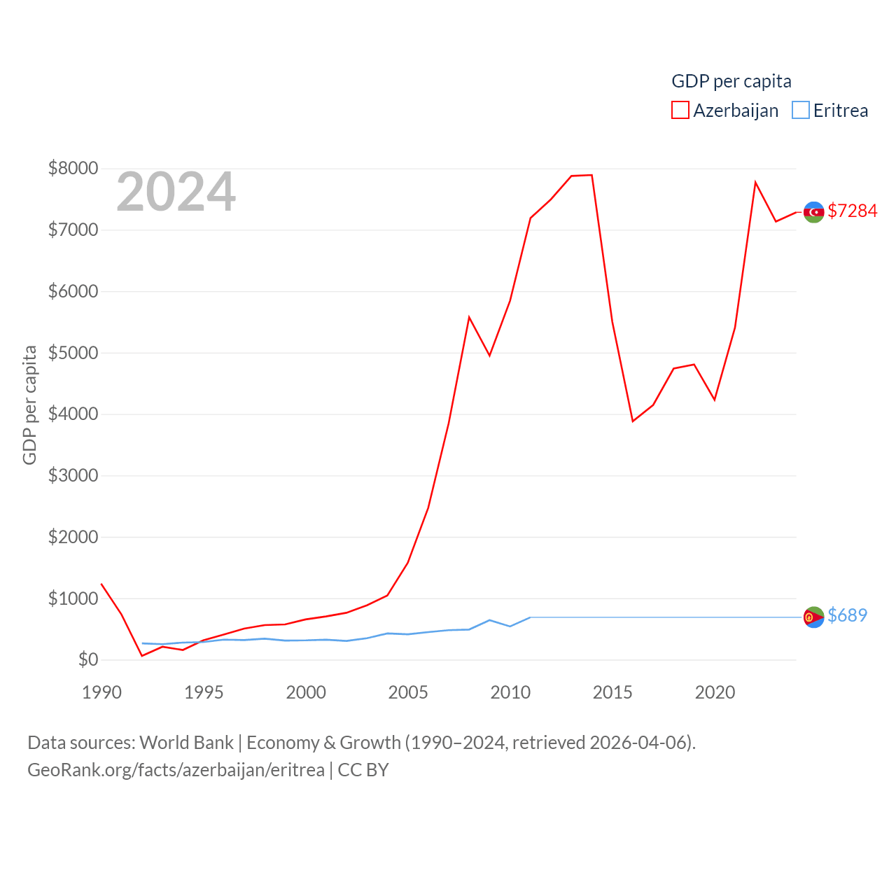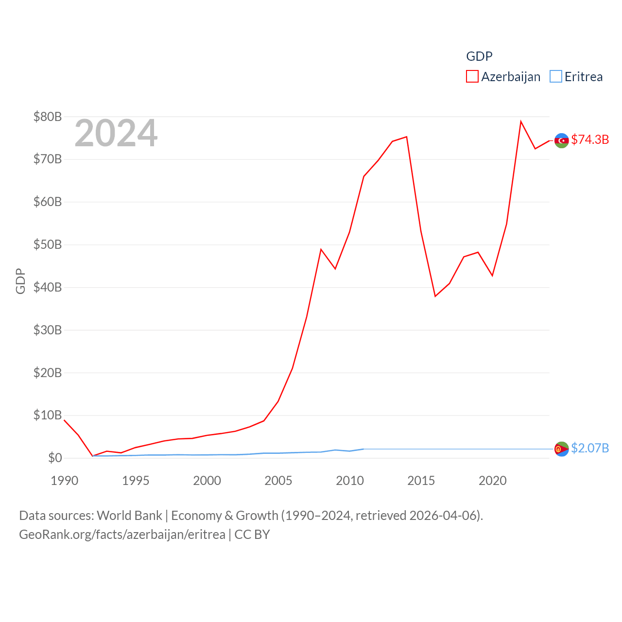 Data sources: World Bank | Economy & Growth (1990–2024, retrieved 2026-04-06).