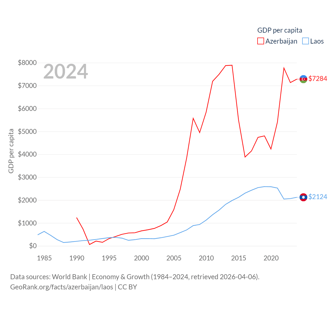 Data sources: World Bank | Economy & Growth (1984–2024, retrieved 2026-04-06).