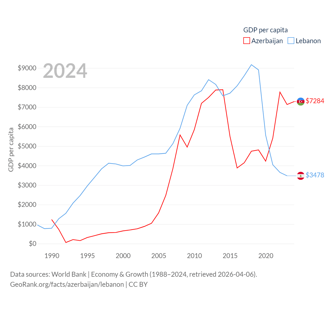 Data sources: World Bank | Economy & Growth (1988–2024, retrieved 2026-04-06).