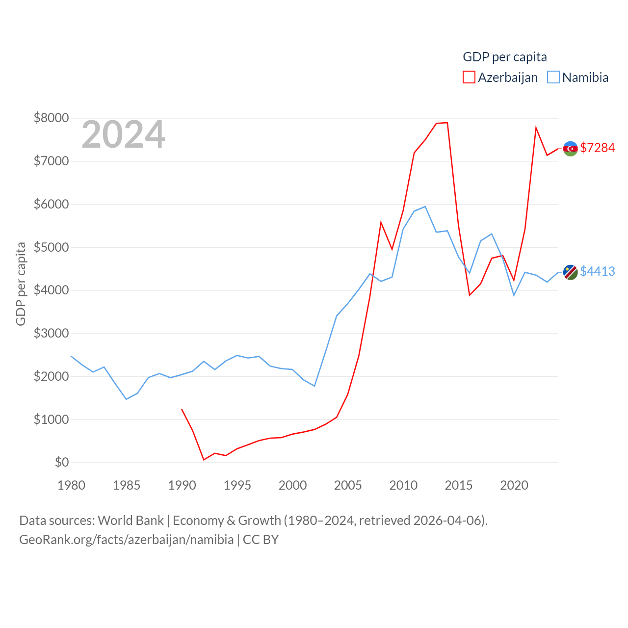 Data sources: World Bank | Economy & Growth (1980–2024, retrieved 2026-04-06).