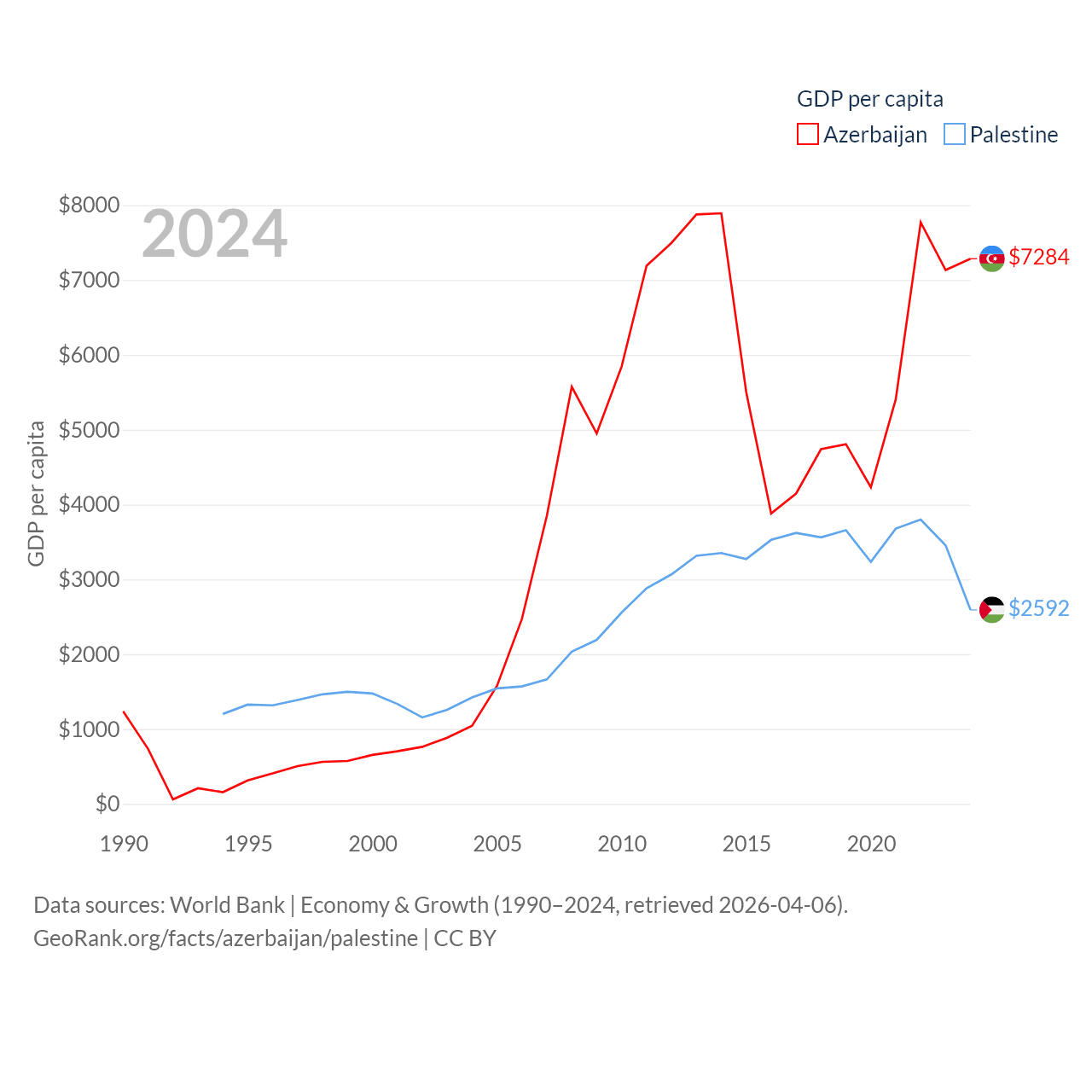 Data sources: World Bank | Economy & Growth (1990–2024, retrieved 2026-04-06).