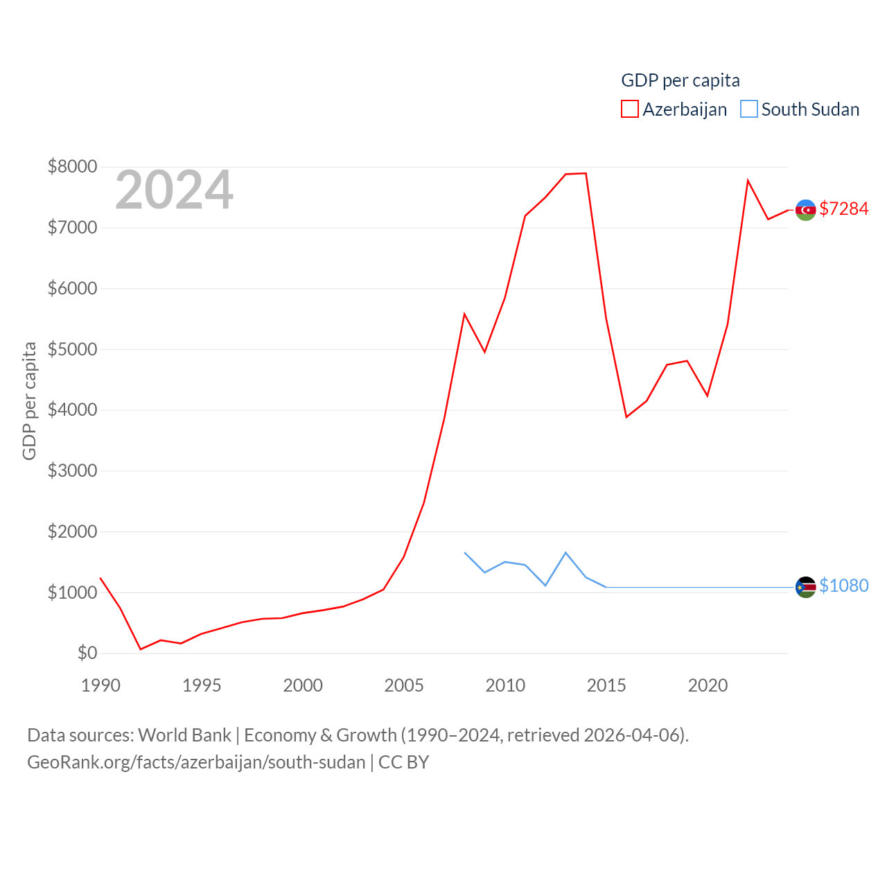 Data sources: World Bank | Economy & Growth (1990–2024, retrieved 2026-04-06).