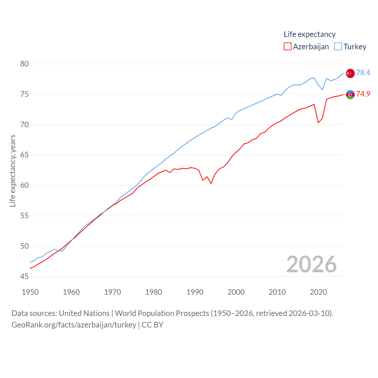 - United Nations | World Population Prospects (1950–2026, retrieved 2026-03-10)