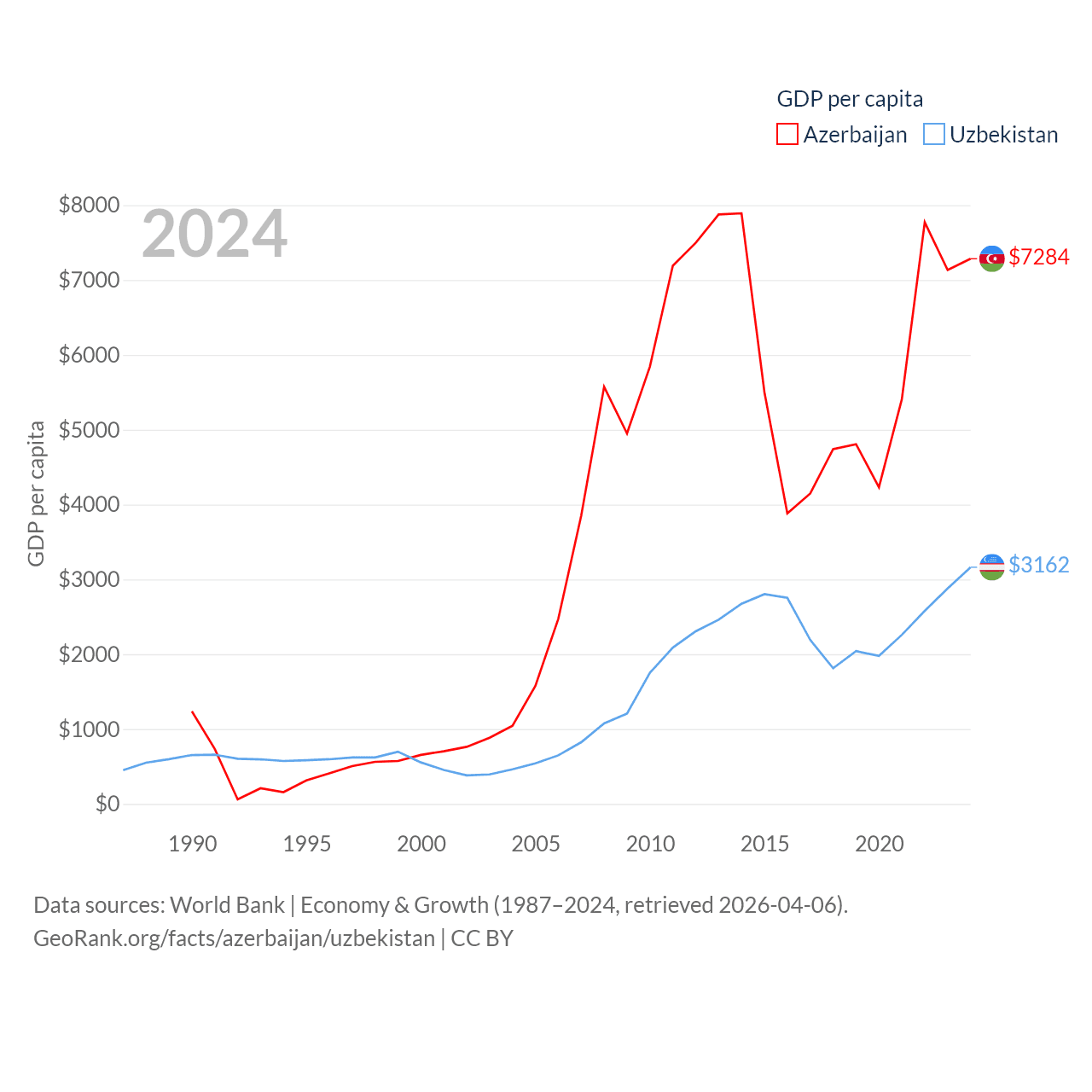 Data sources: World Bank | Economy & Growth (1987–2024, retrieved 2026-04-06).