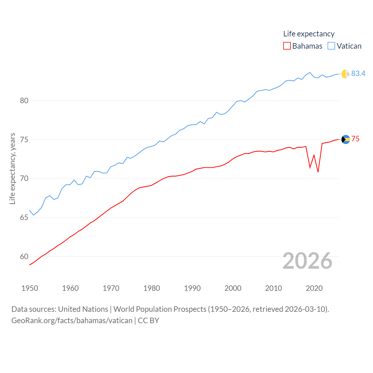 Bahamas vs. Vatican life expectancy calculator