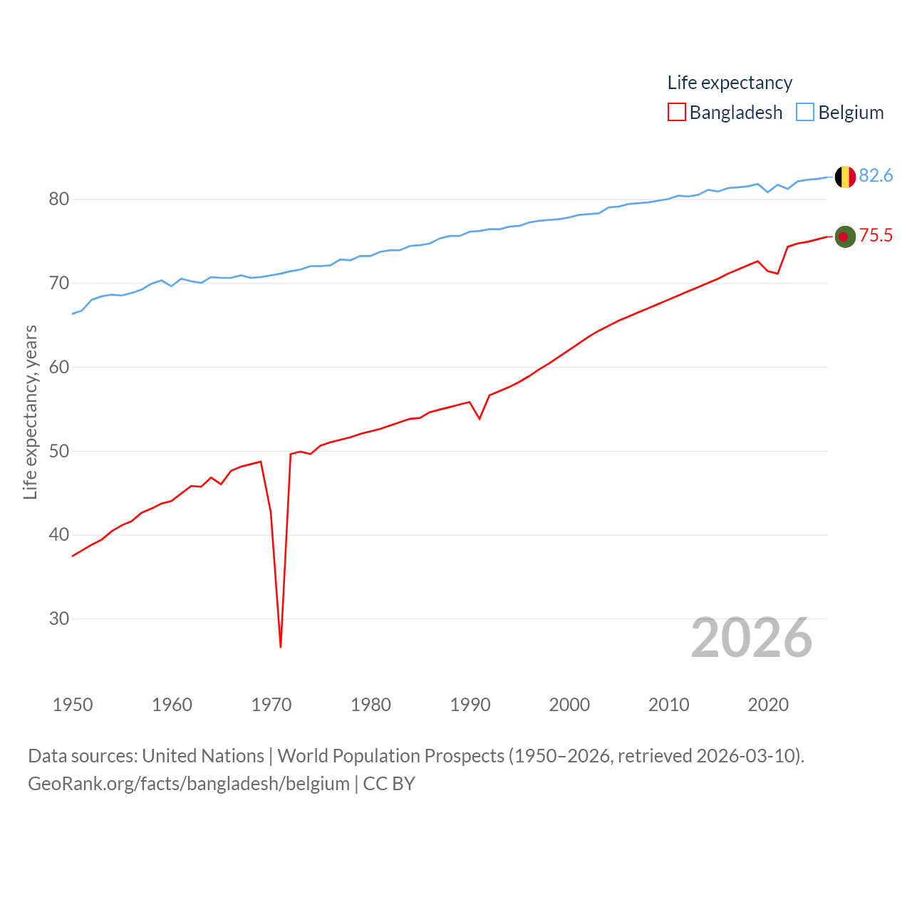 - United Nations | World Population Prospects (1950–2026, retrieved 2026-03-10)