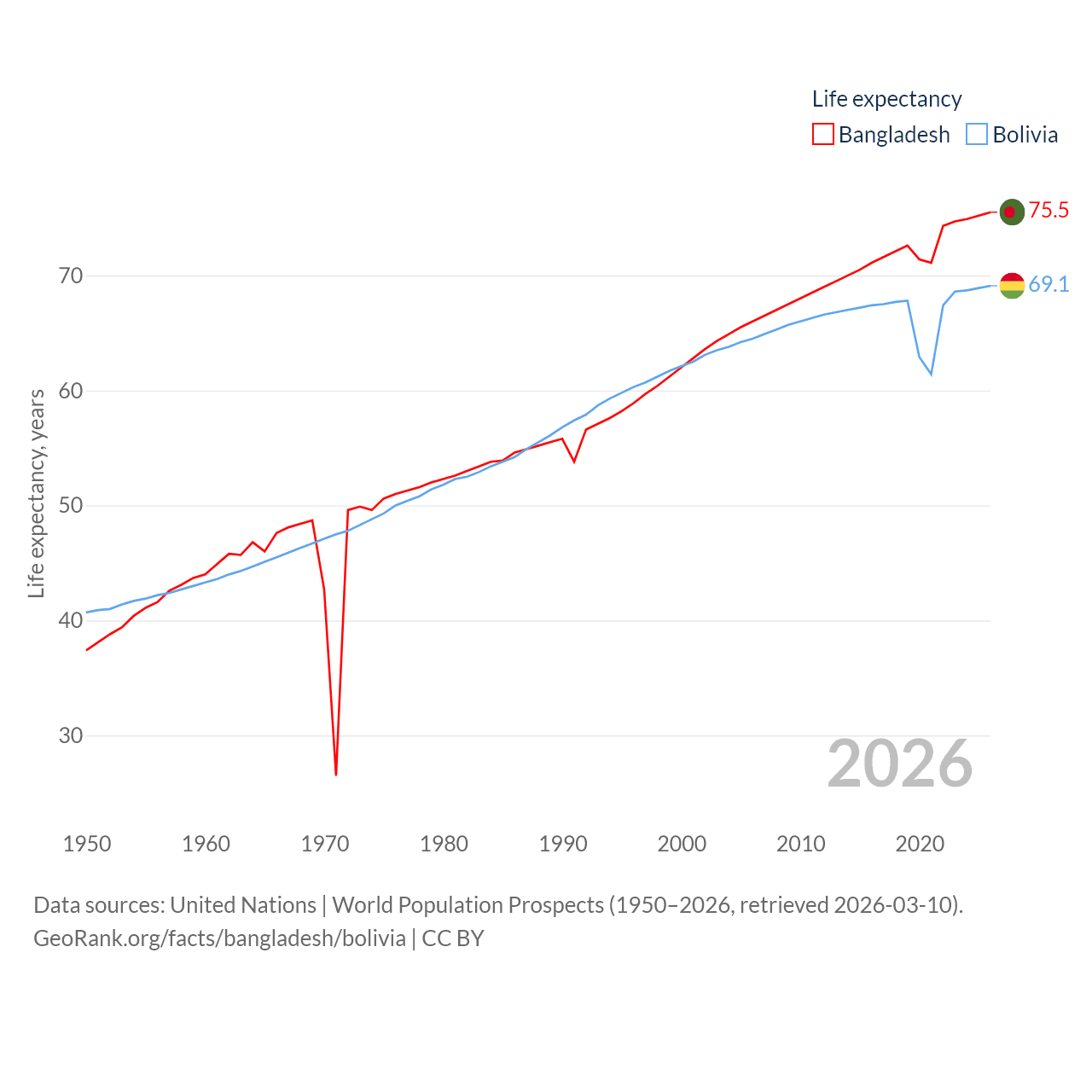 - United Nations | World Population Prospects (1950–2026, retrieved 2026-03-10)