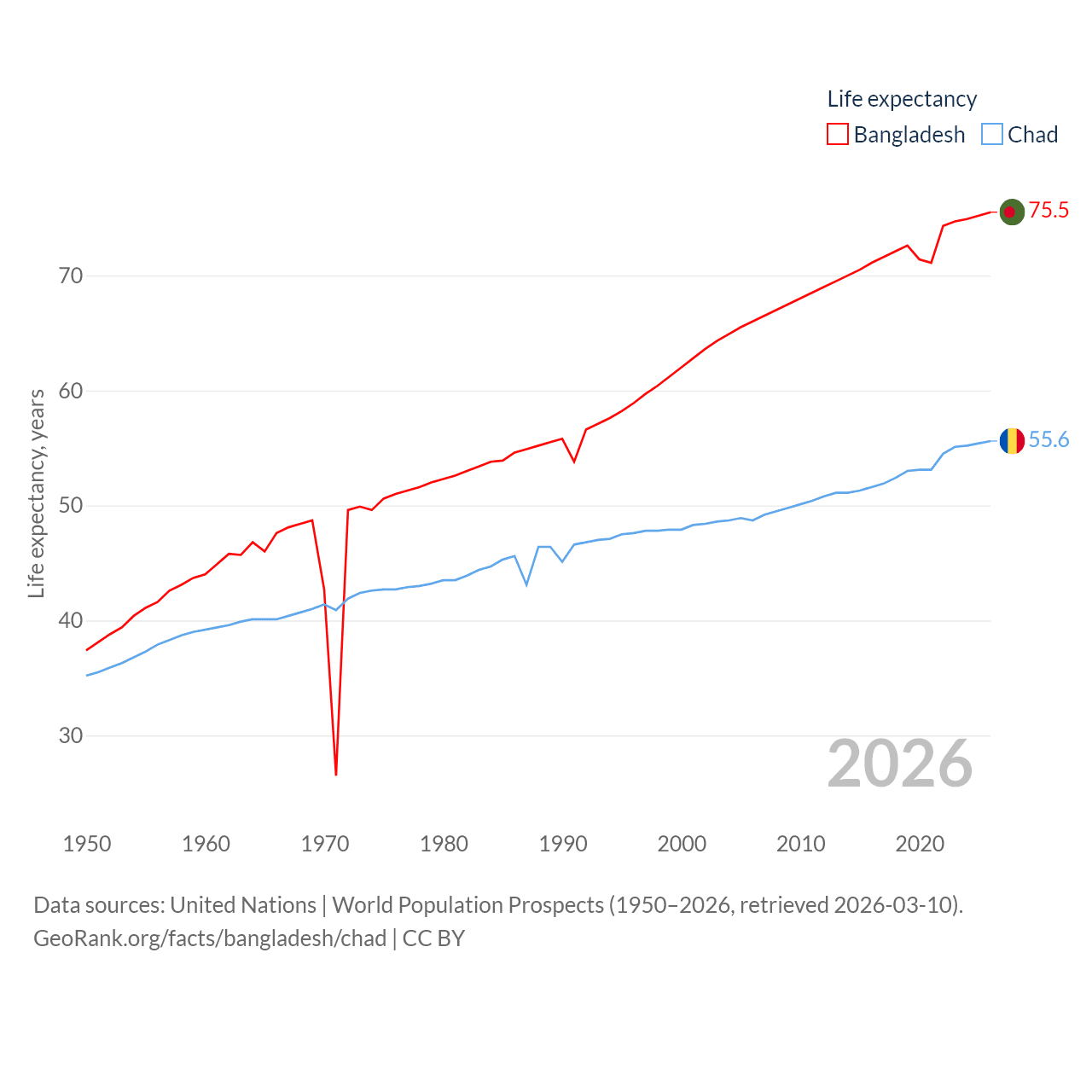 - United Nations | World Population Prospects (1950–2026, retrieved 2026-03-10)
