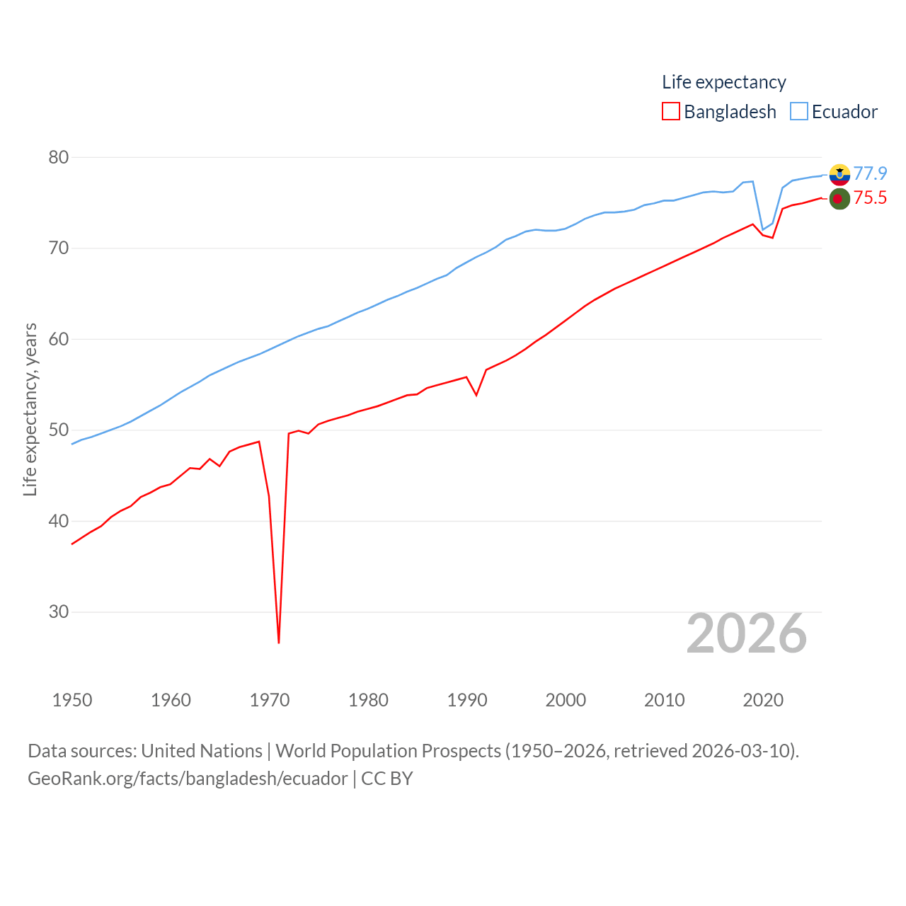 - United Nations | World Population Prospects (1950–2026, retrieved 2026-03-10)