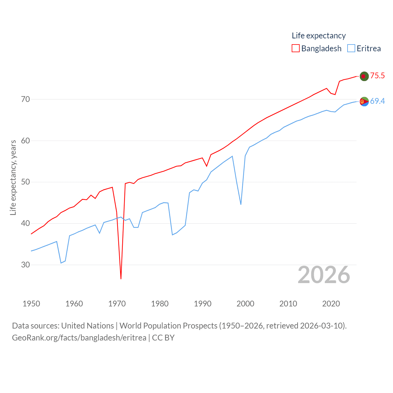 - United Nations | World Population Prospects (1950–2026, retrieved 2026-03-10)
