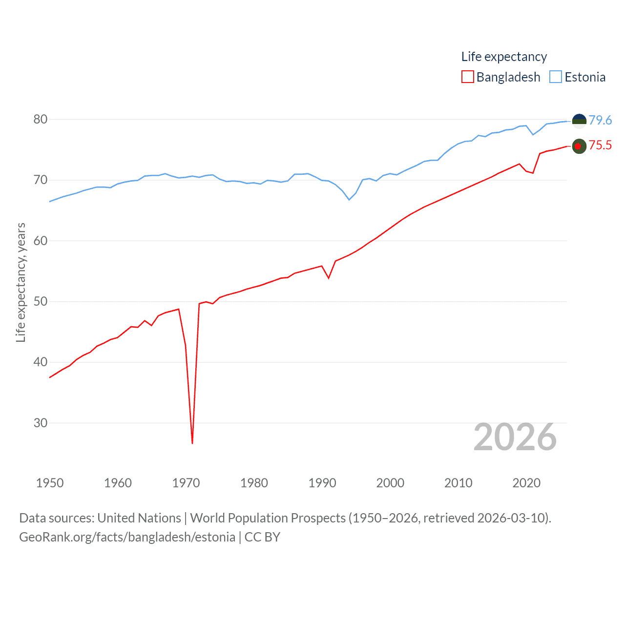 - United Nations | World Population Prospects (1950–2026, retrieved 2026-03-10)