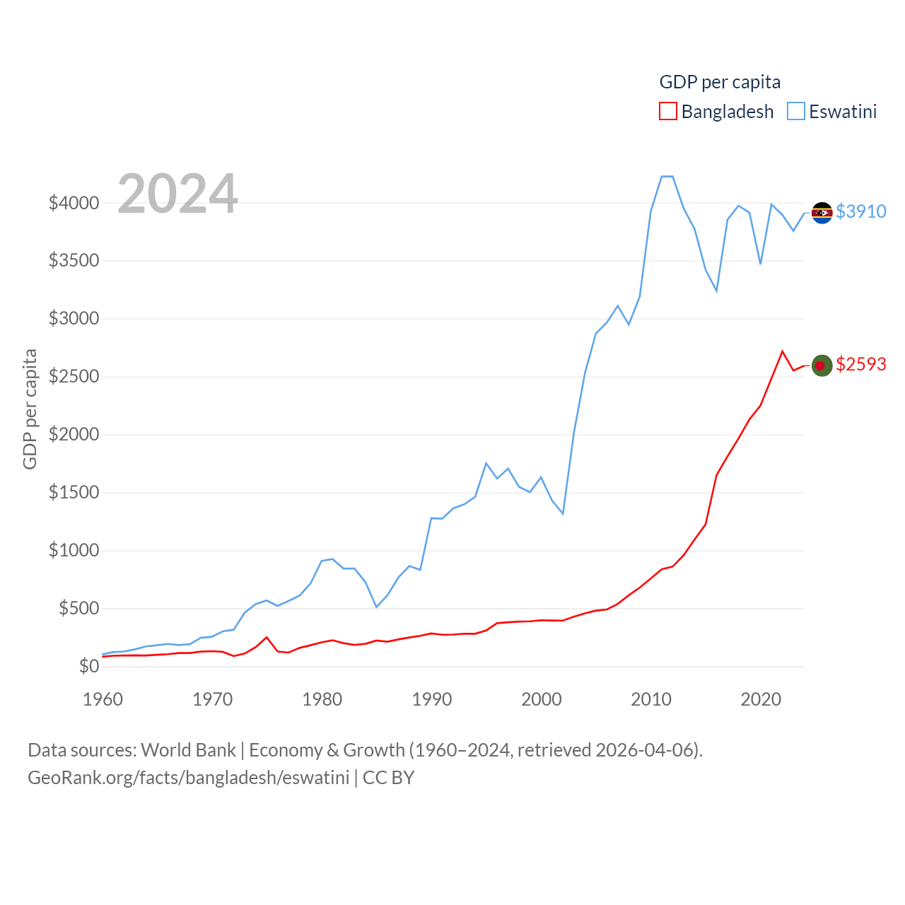 Bangladesh and Eswatini economies compared