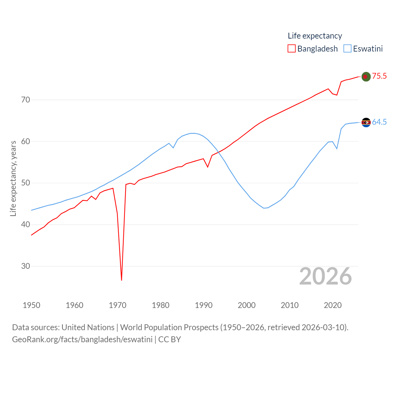 - United Nations | World Population Prospects (1950–2026, retrieved 2026-03-10)