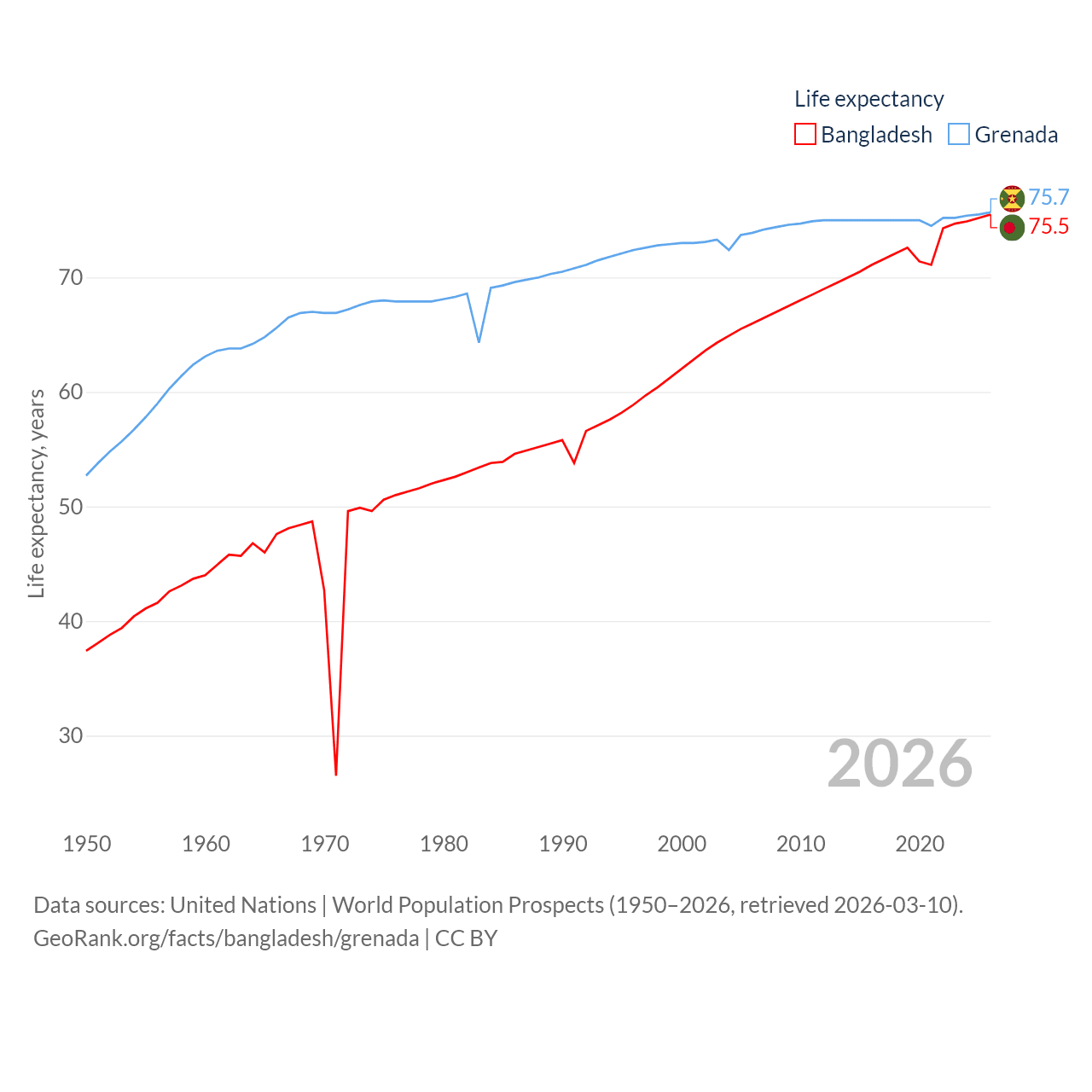 - United Nations | World Population Prospects (1950–2026, retrieved 2026-03-10)