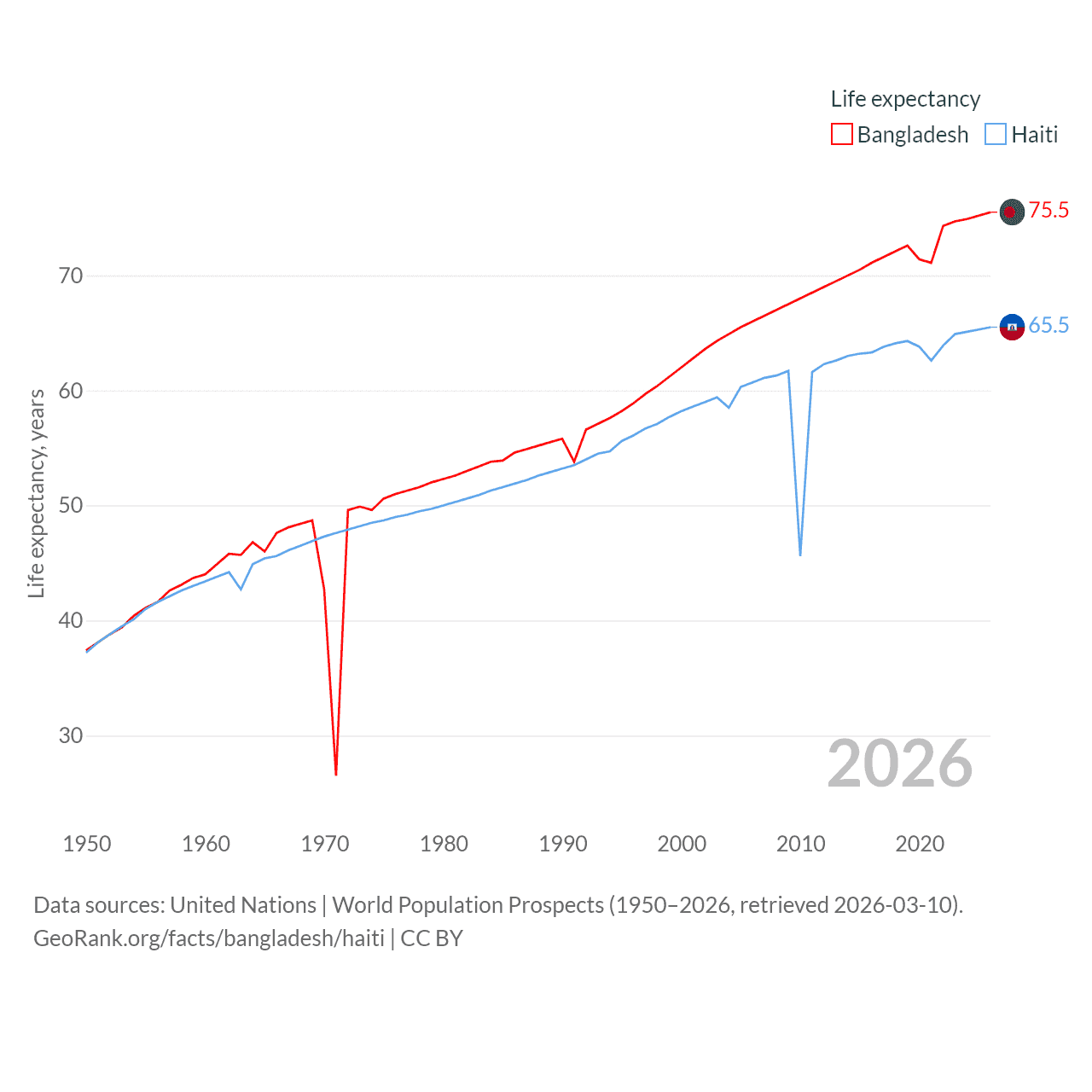 - United Nations | World Population Prospects (1950–2026, retrieved 2026-03-10)