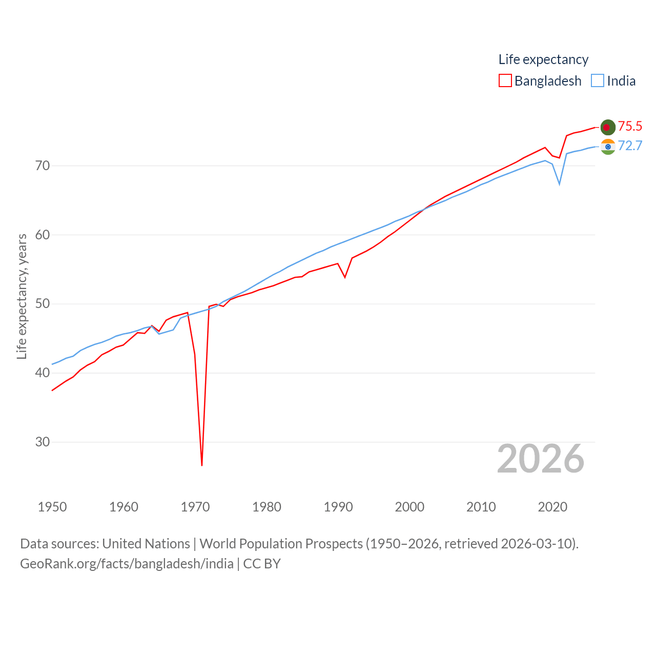 - United Nations | World Population Prospects (1950–2026, retrieved 2026-03-10)