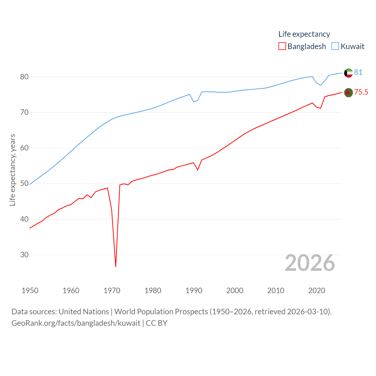 - United Nations | World Population Prospects (1950–2026, retrieved 2026-03-10)